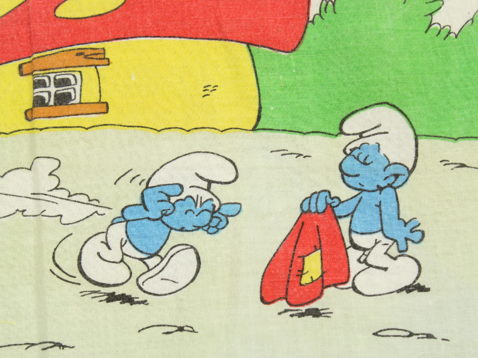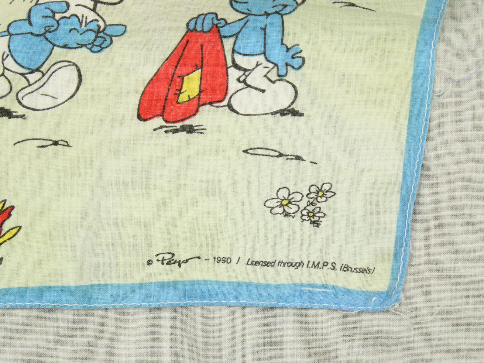 スマーフ(Les Schtroumpfs)のヴィンテージハンカチ。