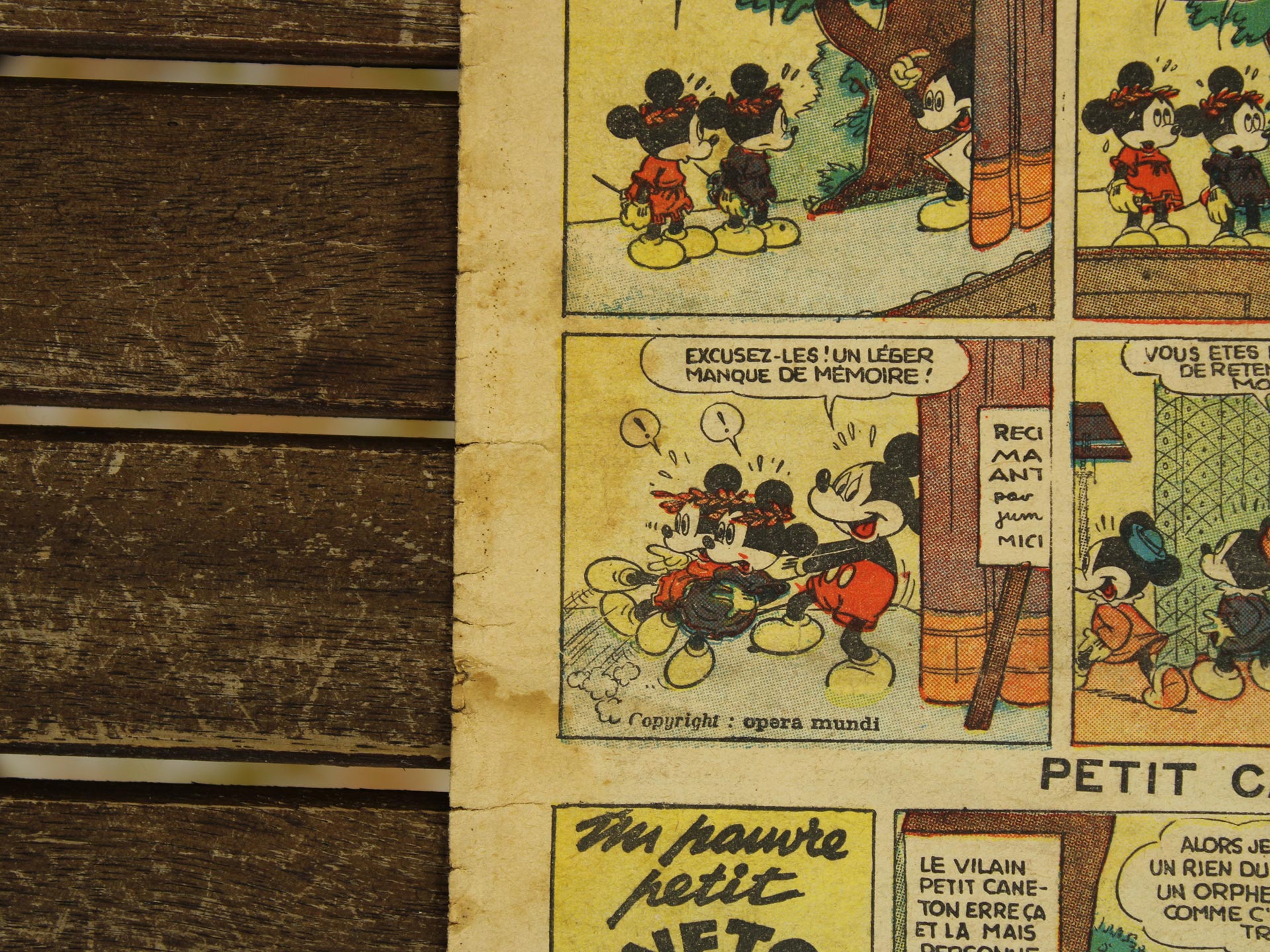 フルカラー、白黒印刷の混じった全8ページのヴィンテージコミック、子供向け週刊誌です。初期ディズニーがお好きな方、ヴィンテージ感を好んでいただける方におすすめです。