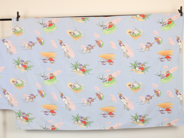 水色地にミス・ビアンカとバーナード、仲間たちが描かれたお布団カバーです。パステルカラーの可愛いデザイン。お布団カバーは両面同じ絵柄です。