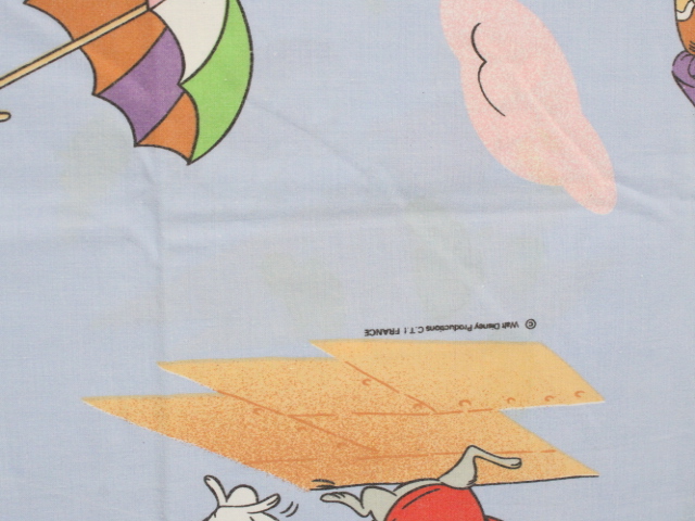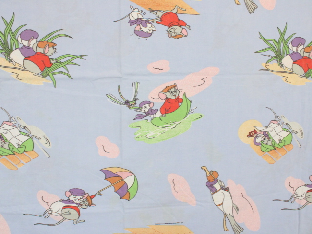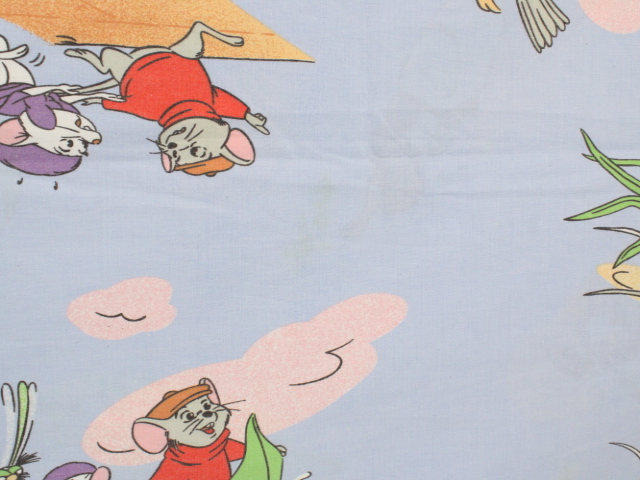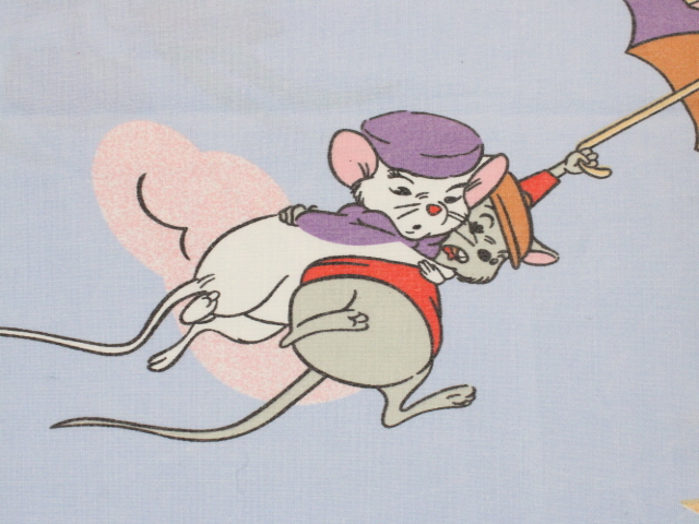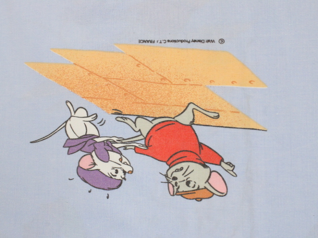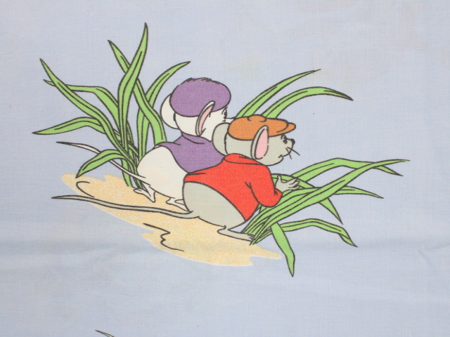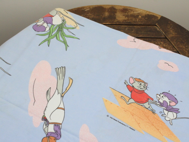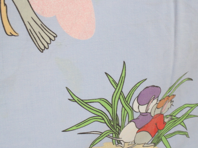 WALT DISNEY PRODUCTIONS、ビアンカの大冒険、キャラクタービンテージシーツ。80年代、フランス。