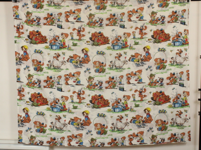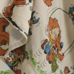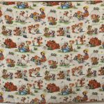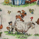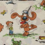 ベルギーの人気漫画、Boule et Bill(英:Billy & Buddy)のフラットシーツです。キャラクターがぎっしりデザインされています。シーツは1枚もの。全体画像(1,2枚め)はそれぞれシーツを2つ折りにして撮影しています。おそらく綿化繊混紡生地です。