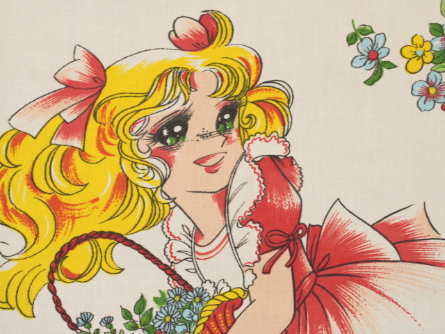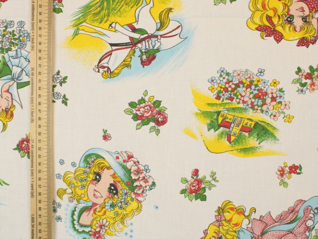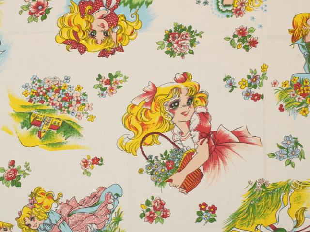 キャンディ・キャンディ、白地に原作そのままの繊細な絵柄が美しい、ヴィンテージ生地です。