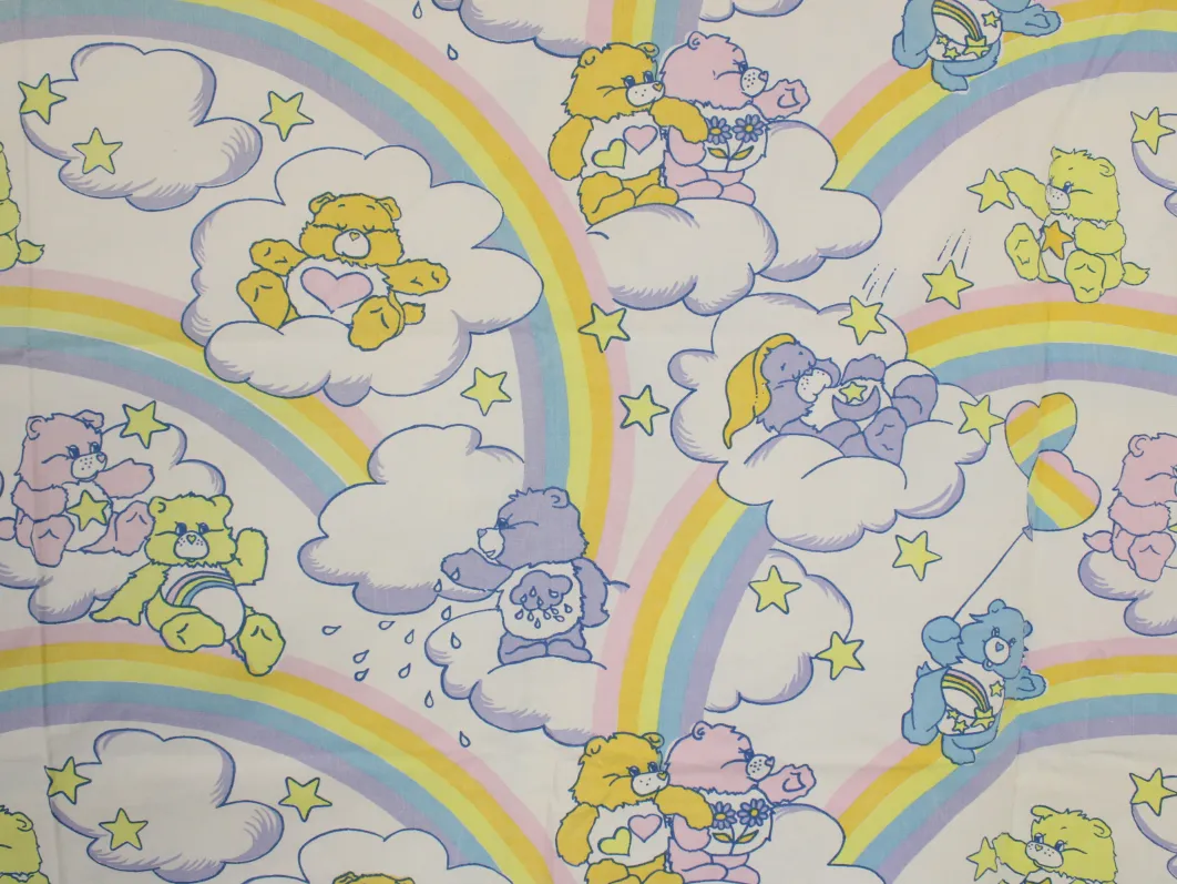 ケアベア(Care Bears)、キャラクタービンテージシーツ。解体生地。