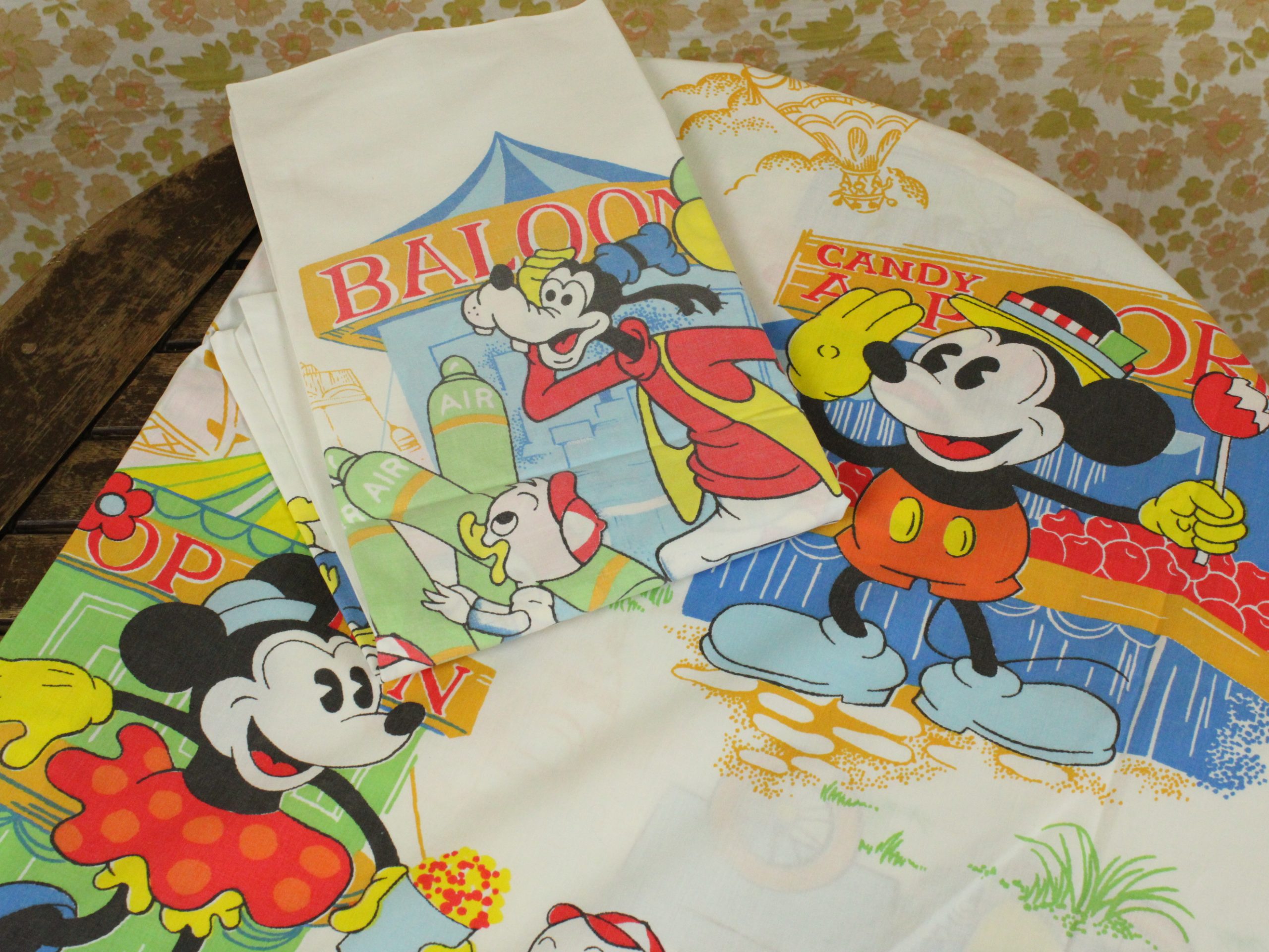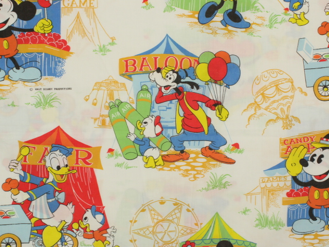WALT DISNEY PRODUCTIONS、ミッキーと仲間たち、キャラクタービンテージシーツ。70~80年代。