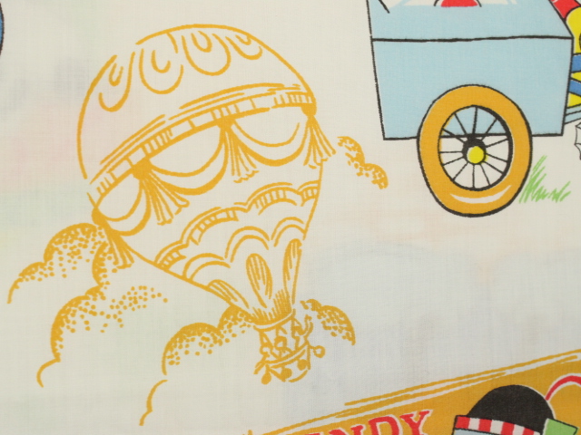 ミッキー、ミニーとドナルドや仲間たち。白地カーニバル柄のフラットシーツ&ピローのベッドセットです。レトロな絵柄のキャラクターたちが愛らしいです。シーツは1枚もの。全体画像(1,2枚め)はそれぞれシーツを2つ折りにして撮影しています。ピローカバーは裏表別柄です。化繊まじりのサラッとした手触りの生地です。