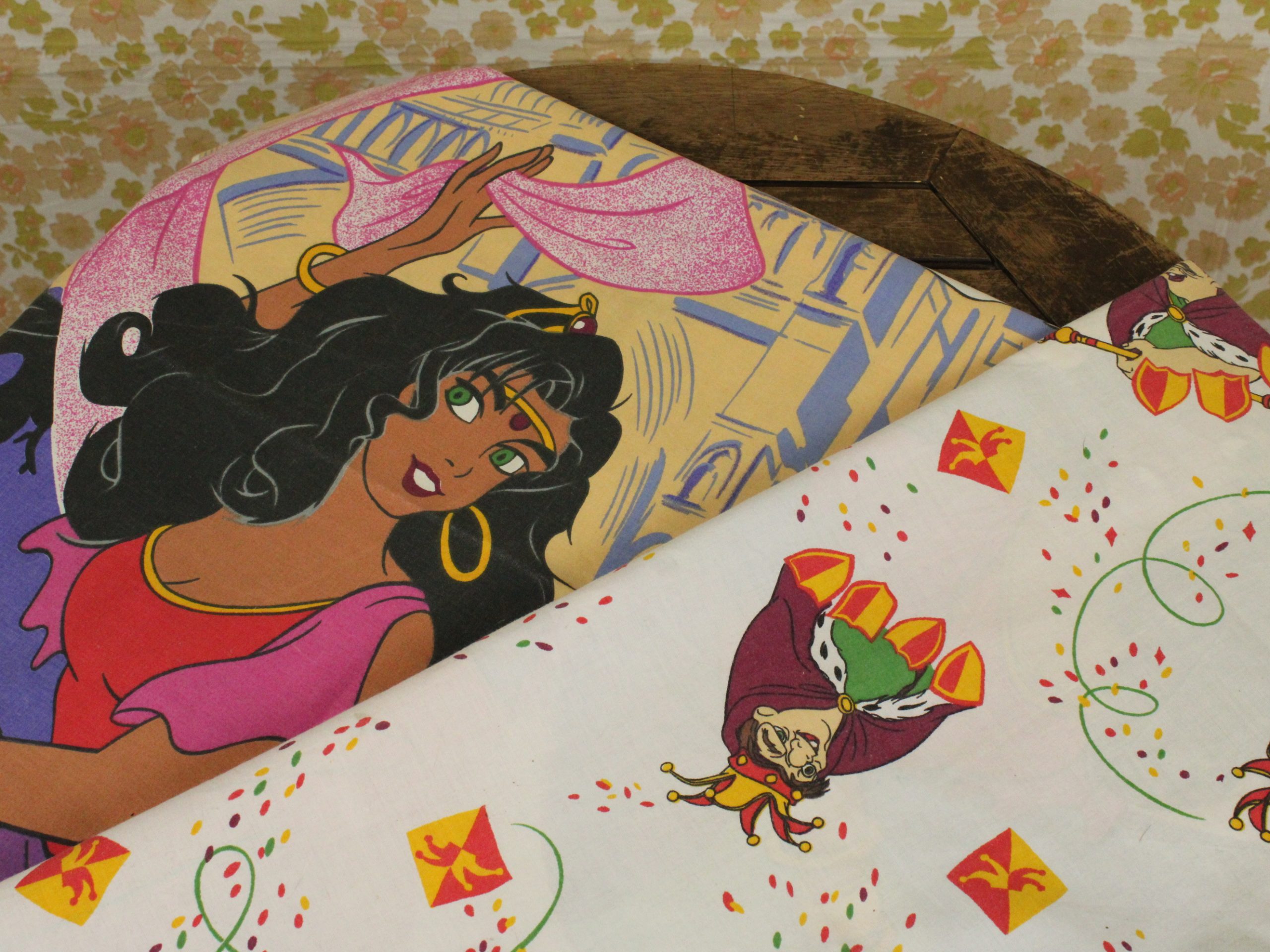 ディズニー、ノートルダムの鐘、キャラクタービンテージシーツ。90年代、フランス。