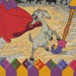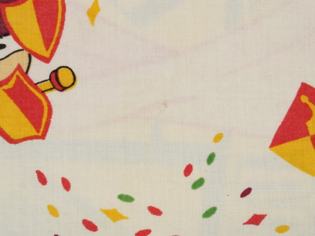 トプシー・ターヴィーのお祭りのシーンが描かれたお布団カバーです。片面は大きな絵柄、もう片面は小さな絵柄の裏表別柄です。カラフルなコンフェッティが華やかなデザイン。