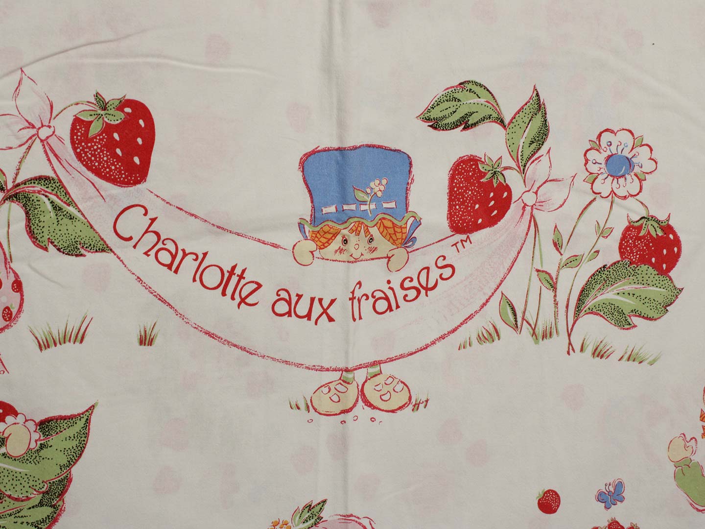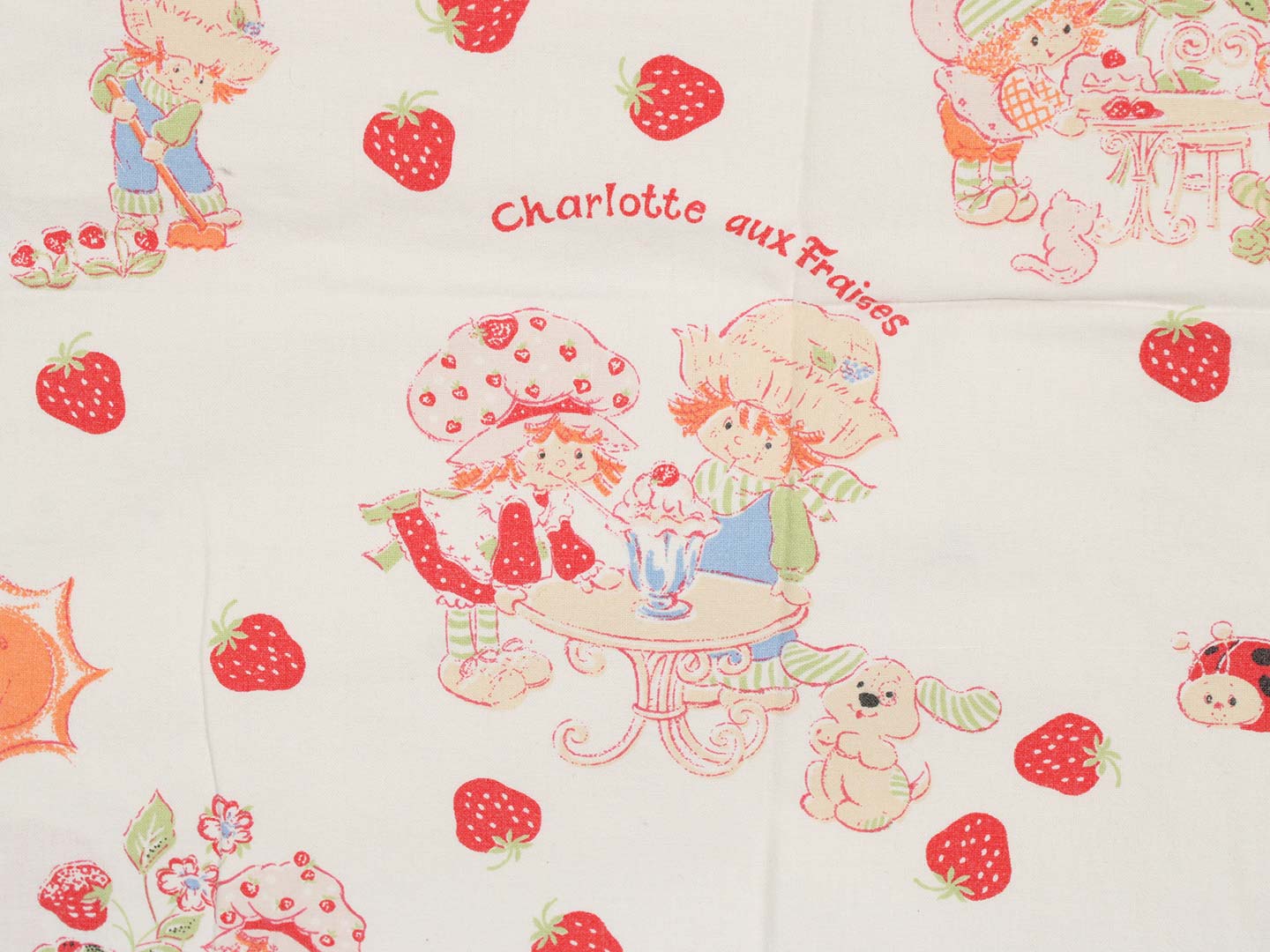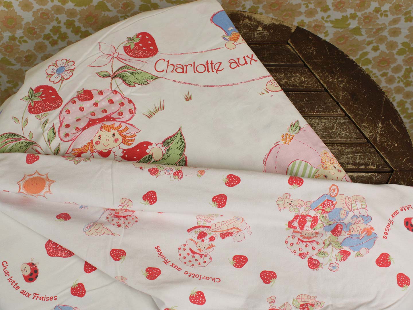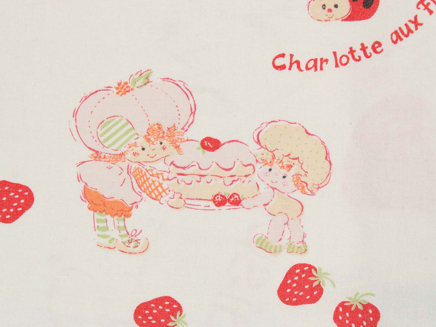 ストロベリーショートケーキちゃん CHARLOTTE AUX FRAISES ビンテージシーツ フランス ヴィンテージ雑貨