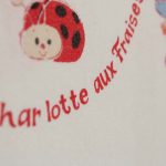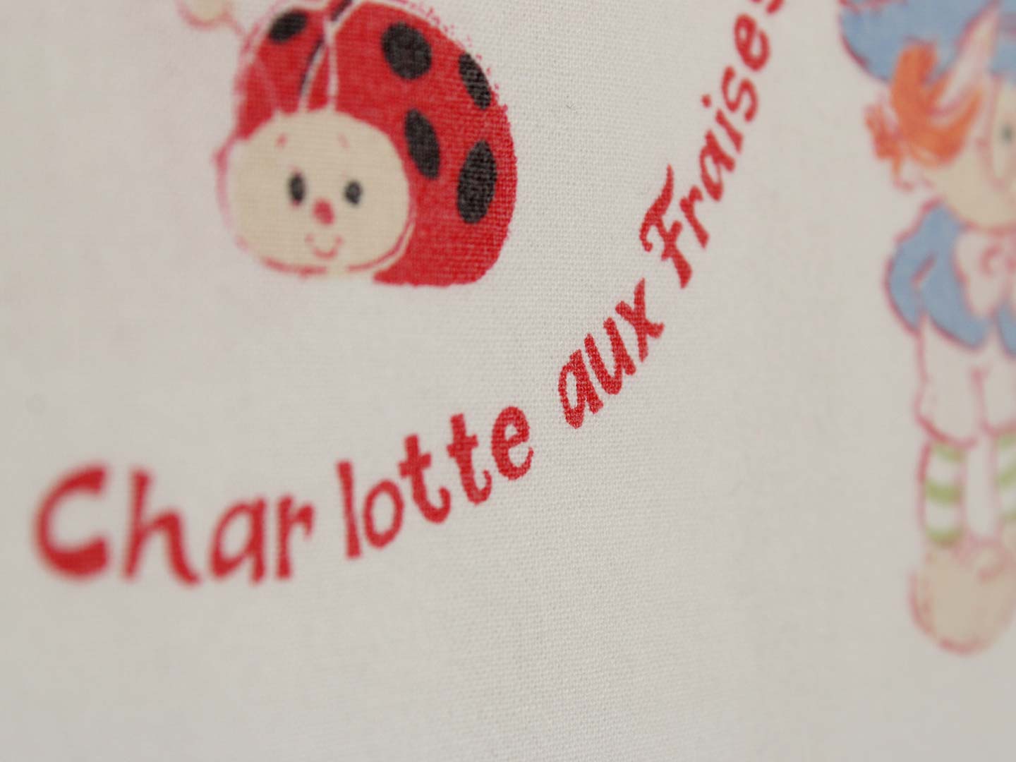 フランス版ストロベリーショートケーキちゃん(Charlotte aux Fraises)のお布団カバーです。片面が中サイズの絵柄、もう片面が小さな絵柄の裏表別柄タイプ。小さなキャラクター達が愛らしいです。しっかりとした透け感のないコットン製です。