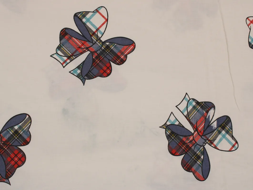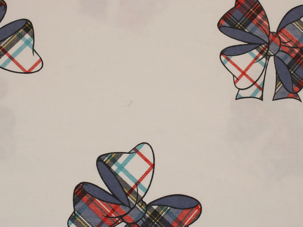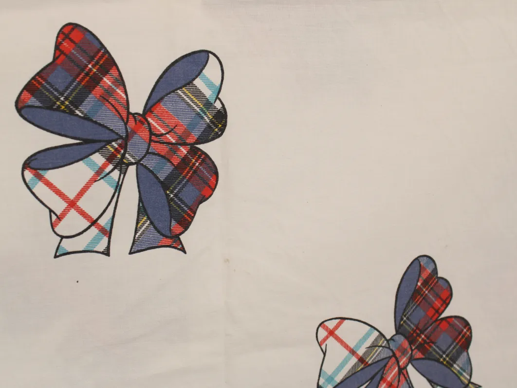 タータンチェックのリボン柄、シングルサイズのフラットシーツです。