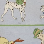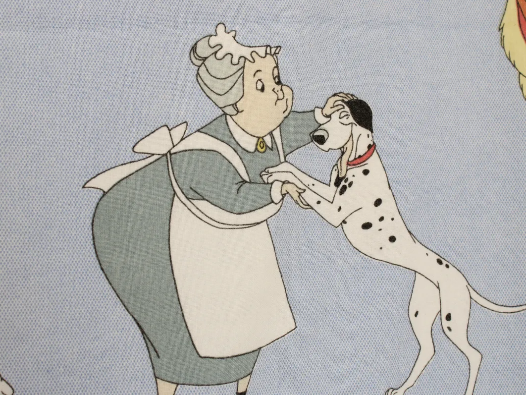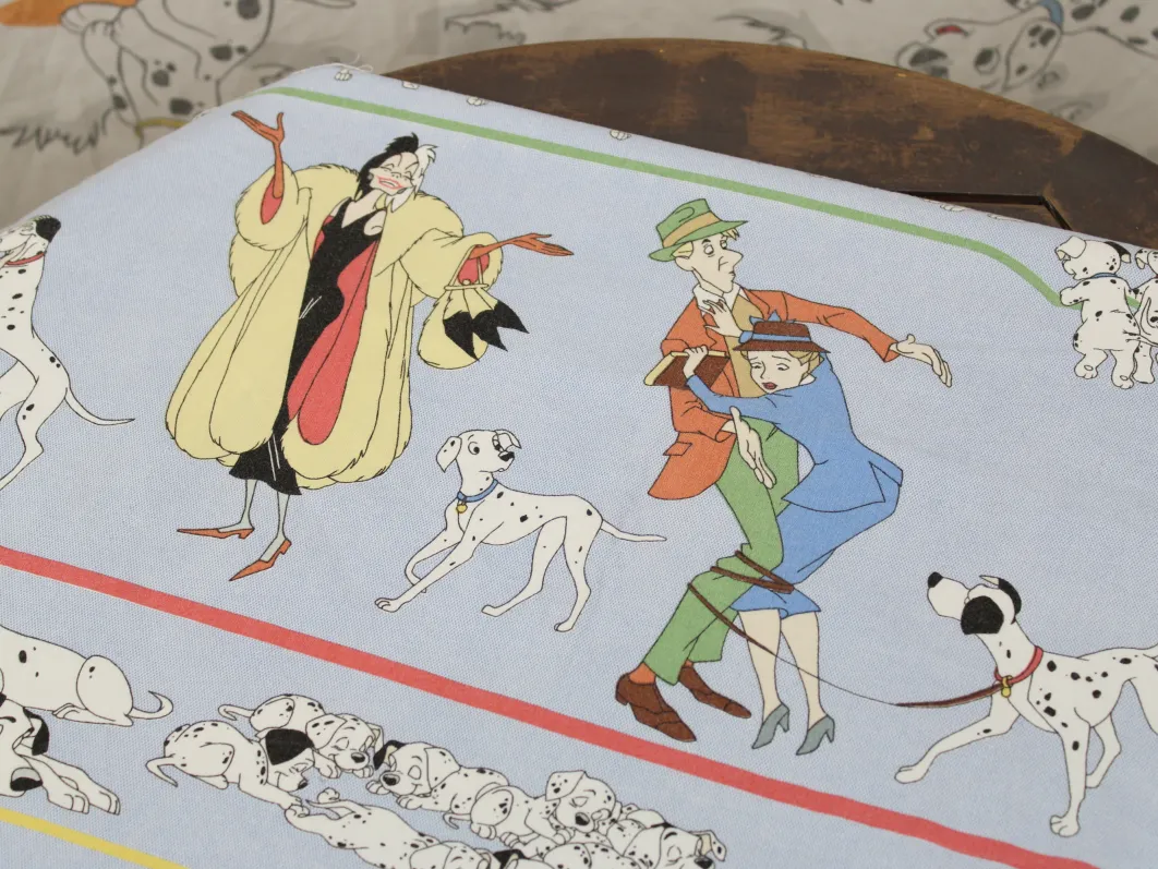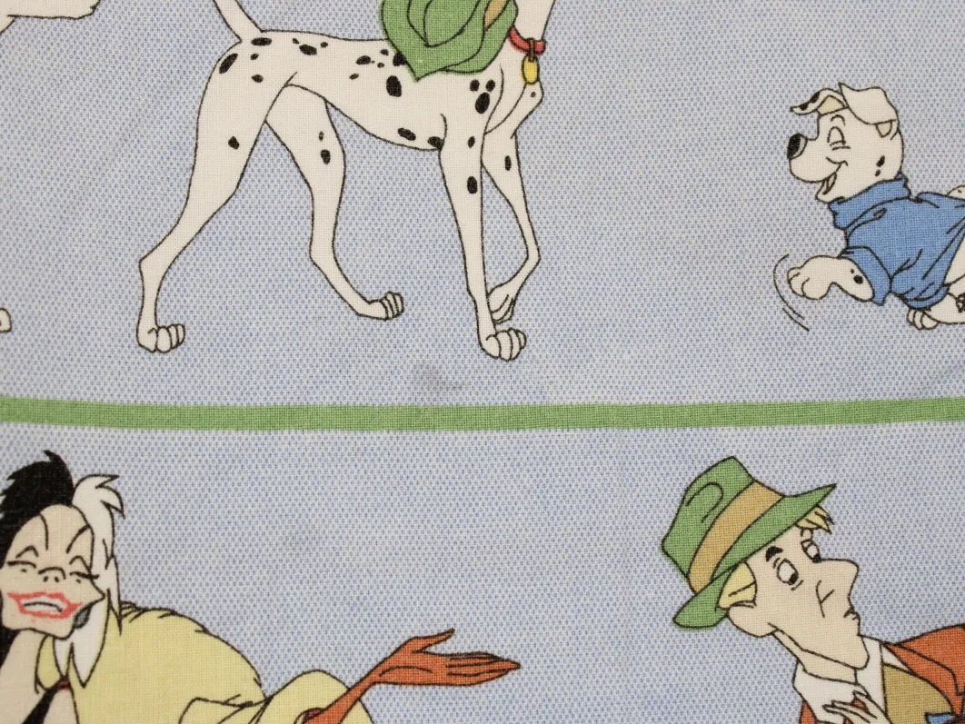 ディズニー、101匹わんちゃん、キャラクタービンテージシーツ。解体生地
