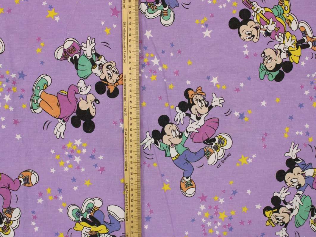 125*90 シーツ解体生地 ミッキー ミニー 星ダンス パープル A