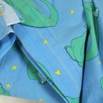 80年代アニメ、恐竜のデンバーのフラットシーツです。シーツは1枚もの。全体画像(1,2枚め)はシーツを2つに折って撮影しています。