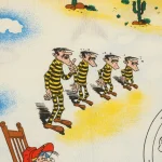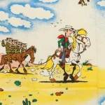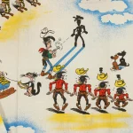 砂漠のラッキー・ルーク。ダルトン兄弟や色々なキャラクターのいるレトロな絵柄。