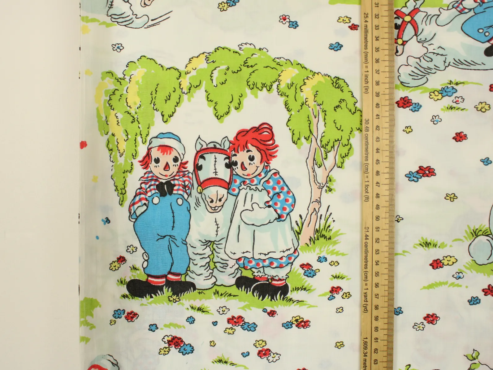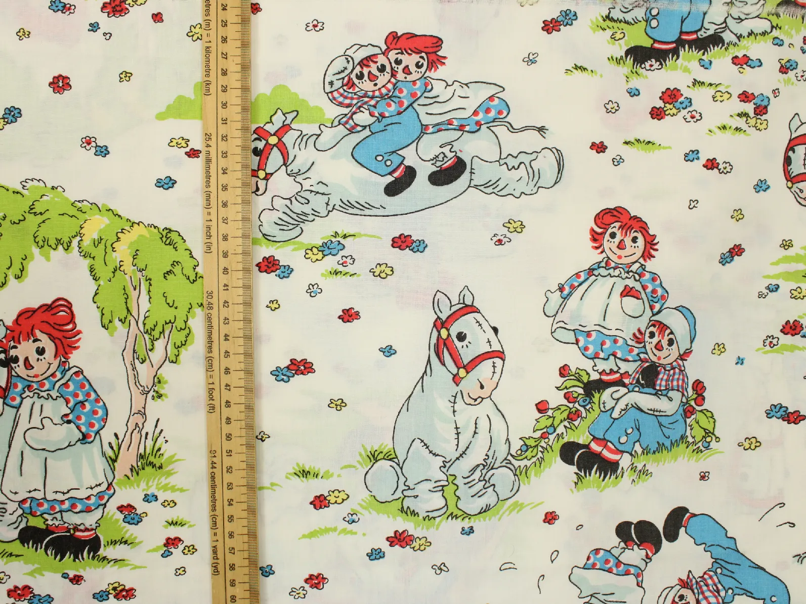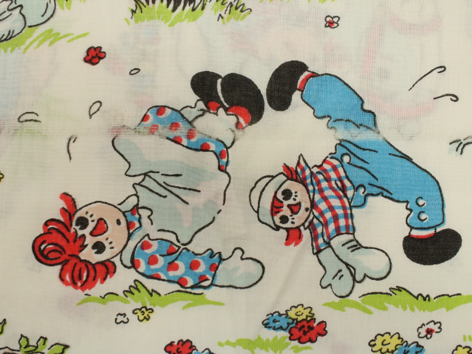 ラガディ・アン&アンディ(Raggedy Ann & Andy)、キャラクタービンテージシーツ。解体生地。