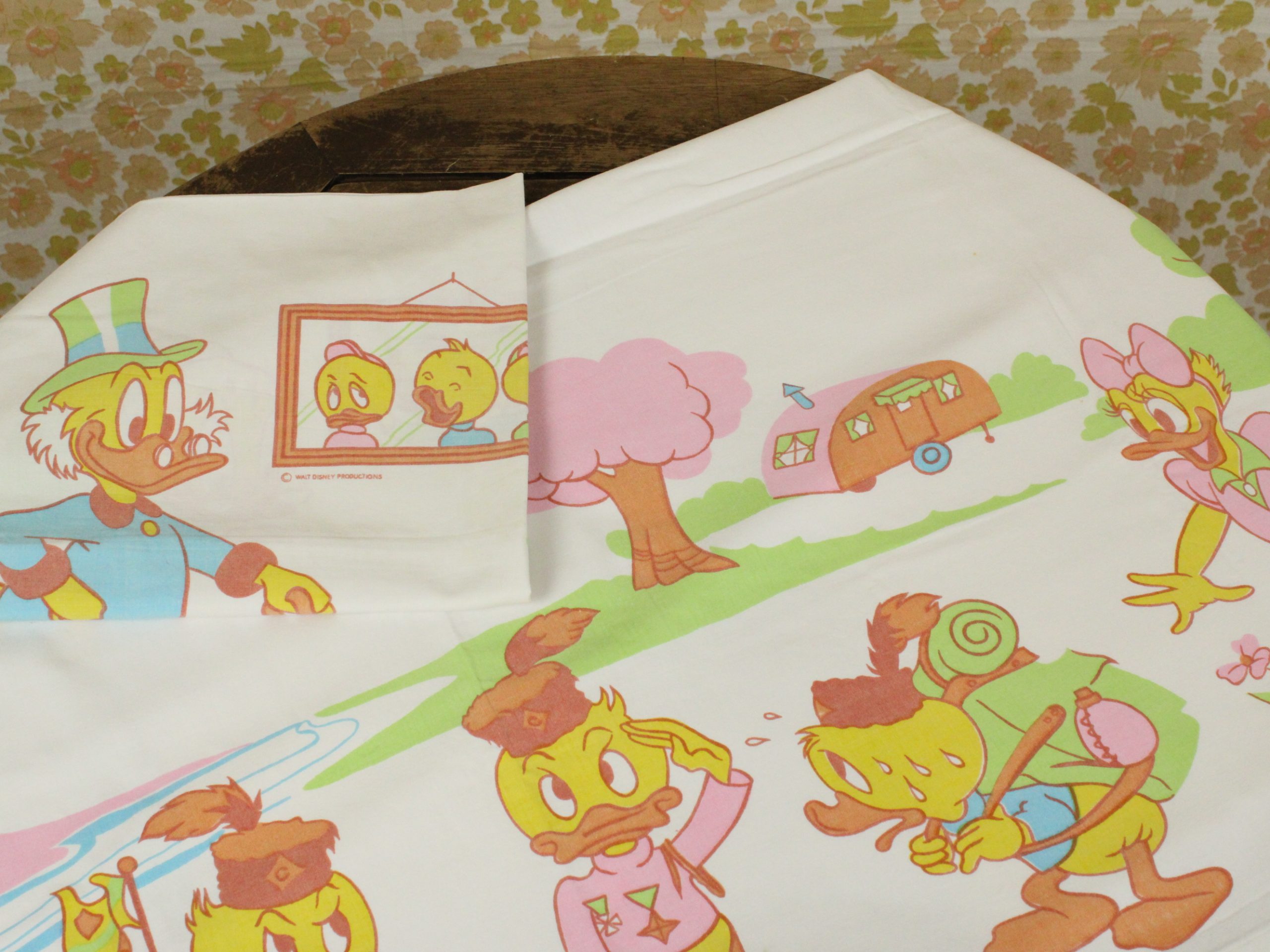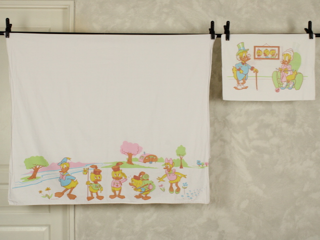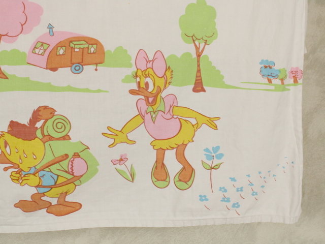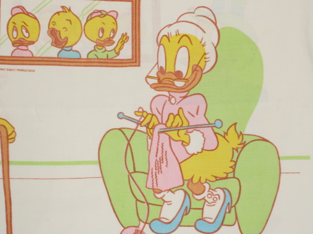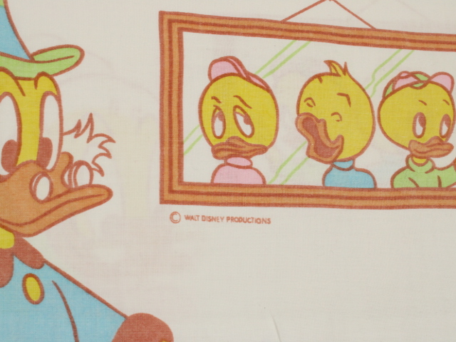 WALT DISNEY PRODUCTIONS、ダックファミリー、キャラクタービンテージシーツ。