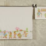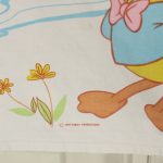 パステルカラーが可愛いダックファミリーの、ベビーサイズフラットシーツ&ピローカバーのベッドセットです。フラットシーツは画像1枚目が全体です。ピローカバーは両面同柄です。