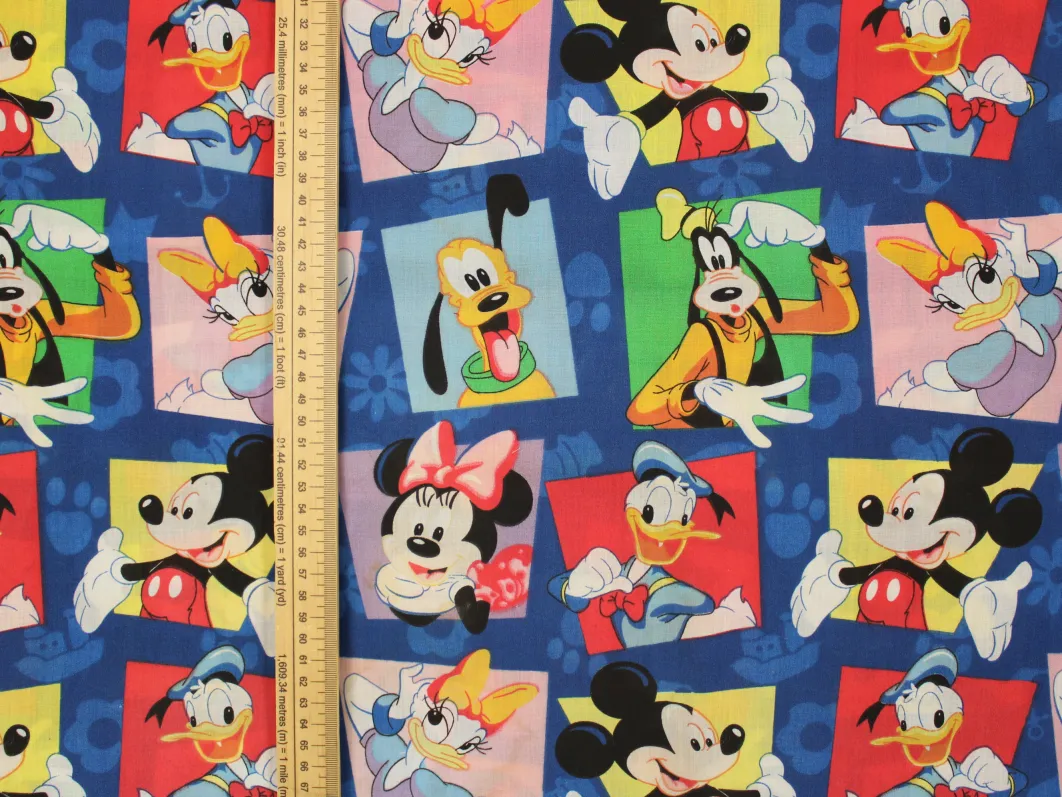 ディズニー、ミッキー&フレンズ、キャラクタービンテージシーツ。解体生地