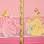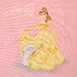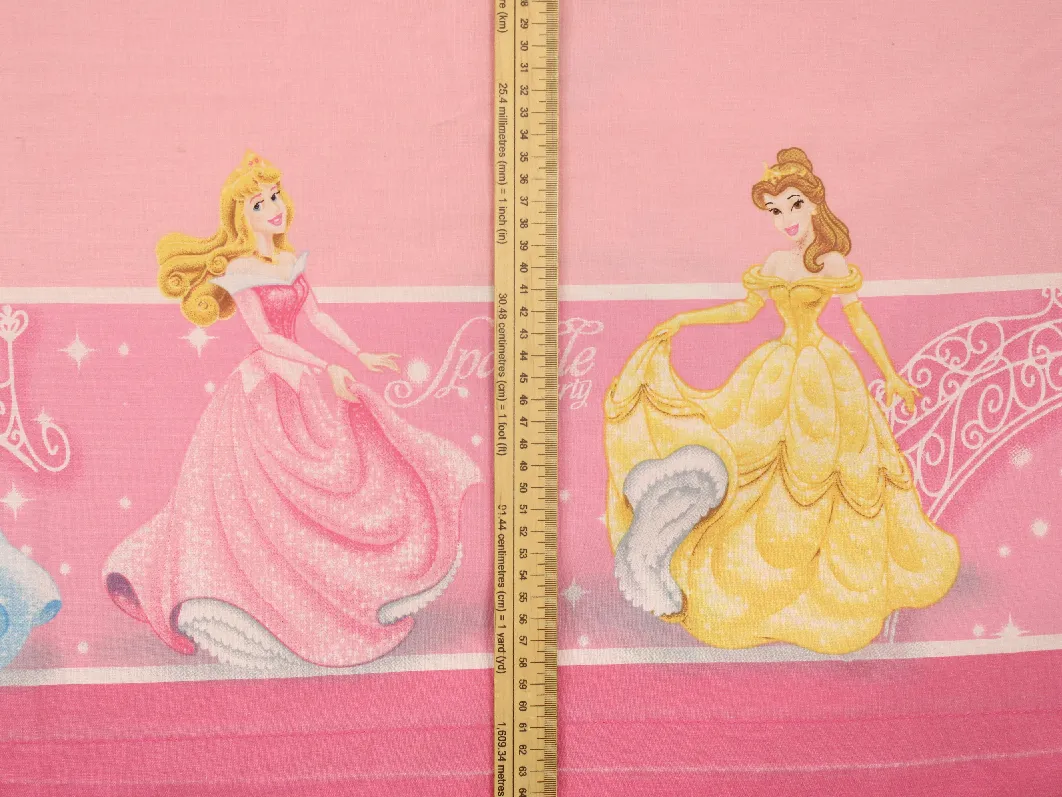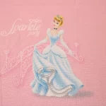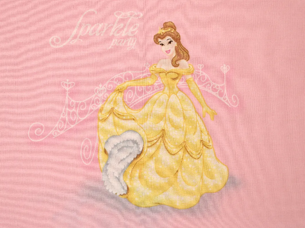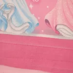 ピンク地に、シンデレラ、オーロラ、白雪姫、ベルのいるフラットシーツです。