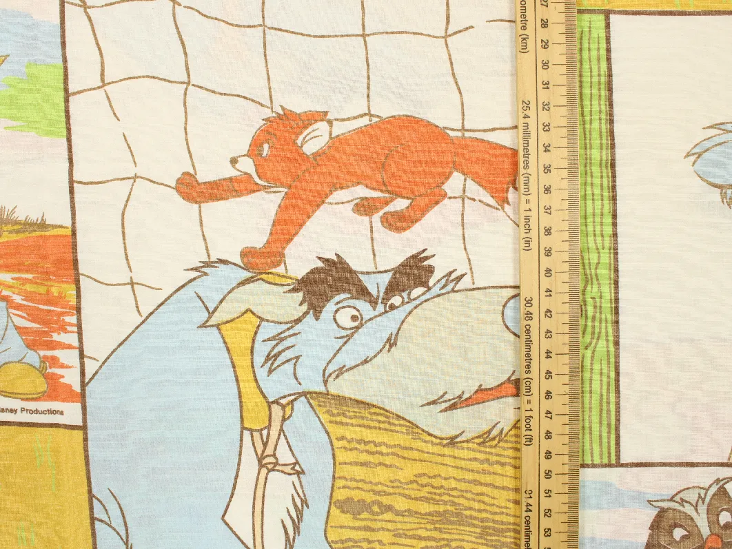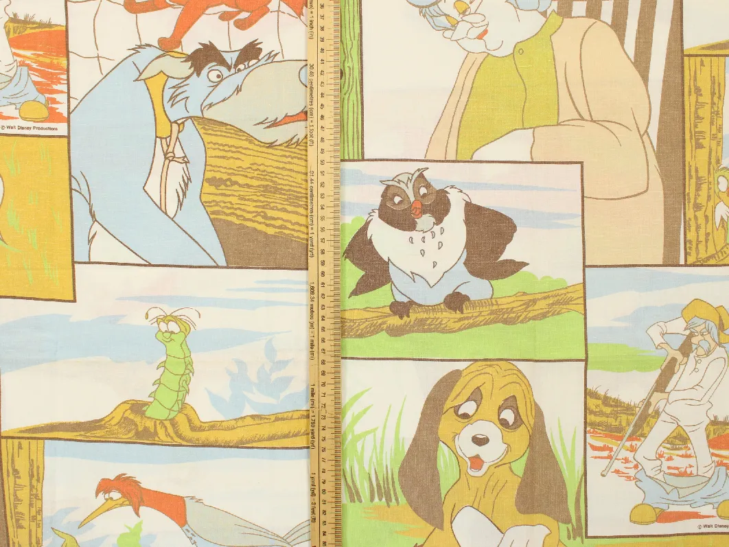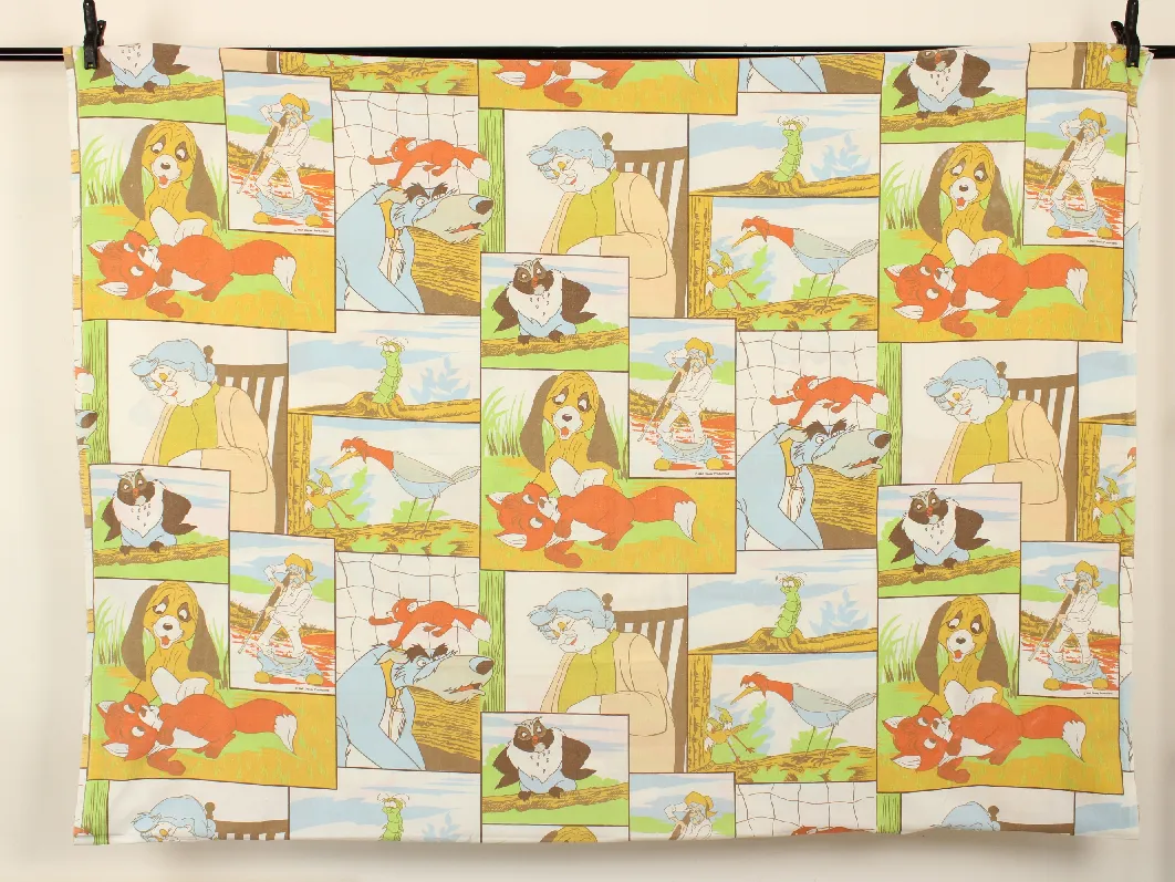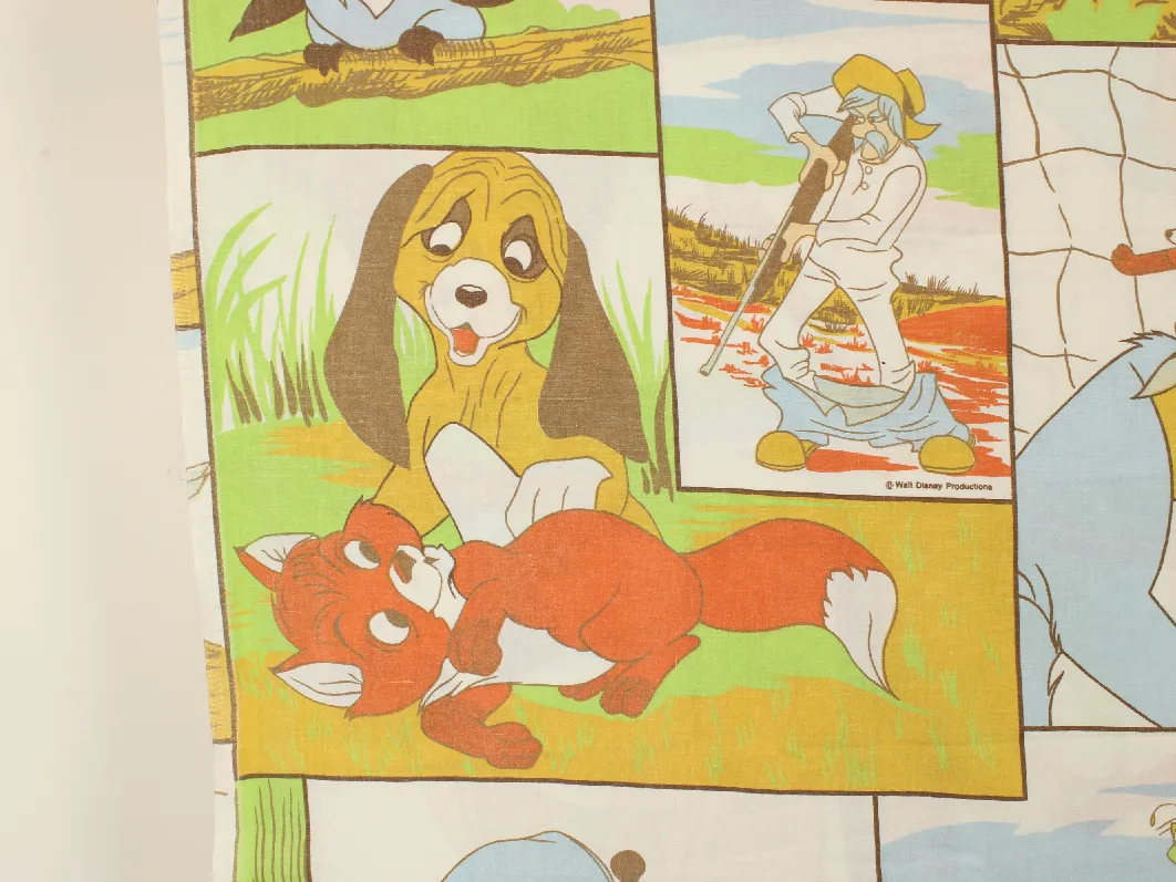 WALT DISNEY PRODUCTIONS、きつねと猟犬、キャラクタービンテージシーツ。解体生地