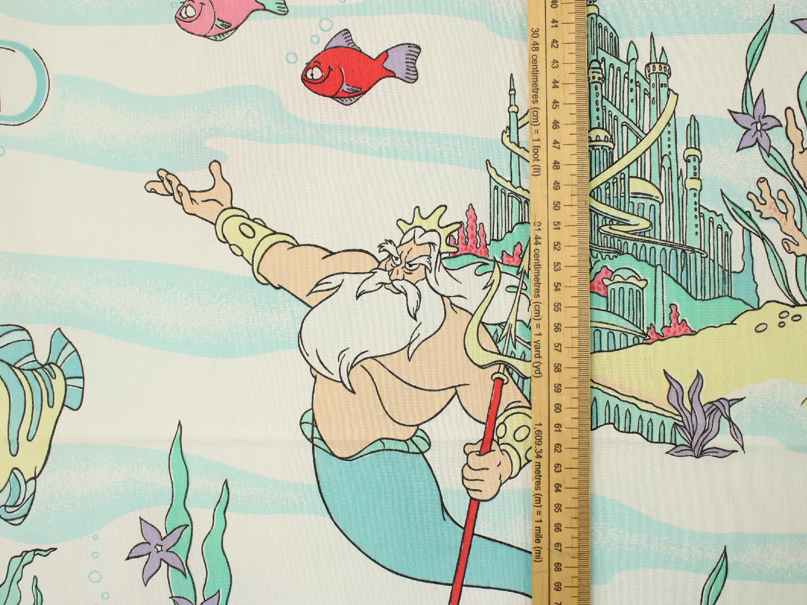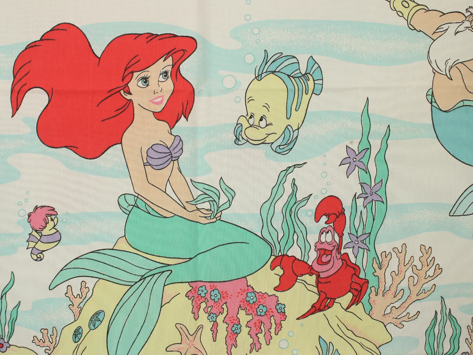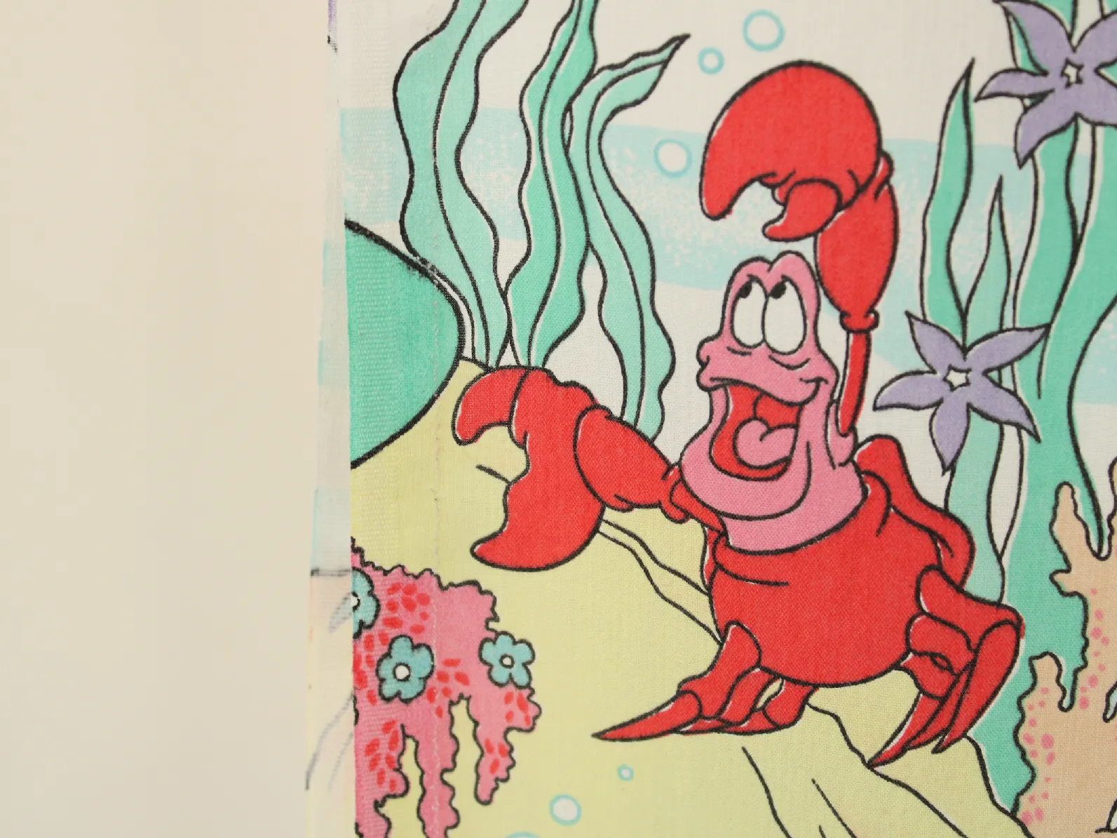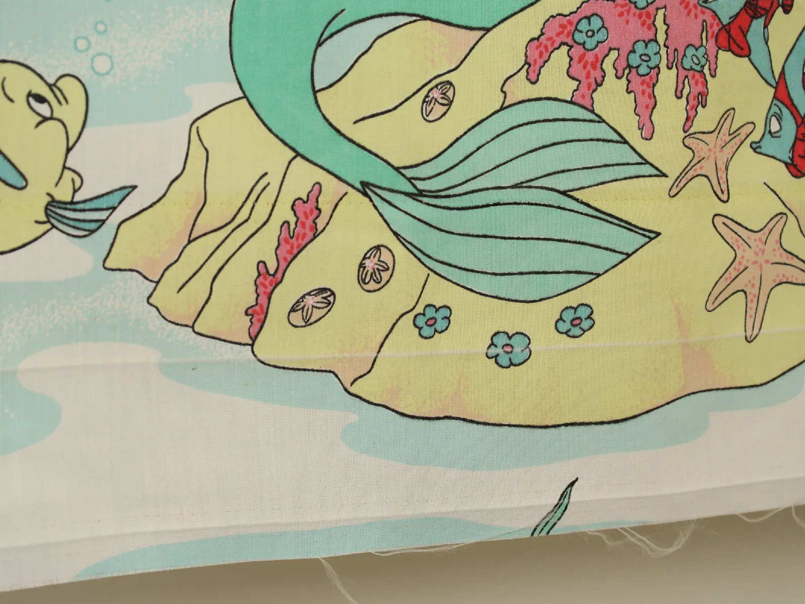 ディズニー、リトルマーメイド、キャラクタービンテージシーツ。解体生地