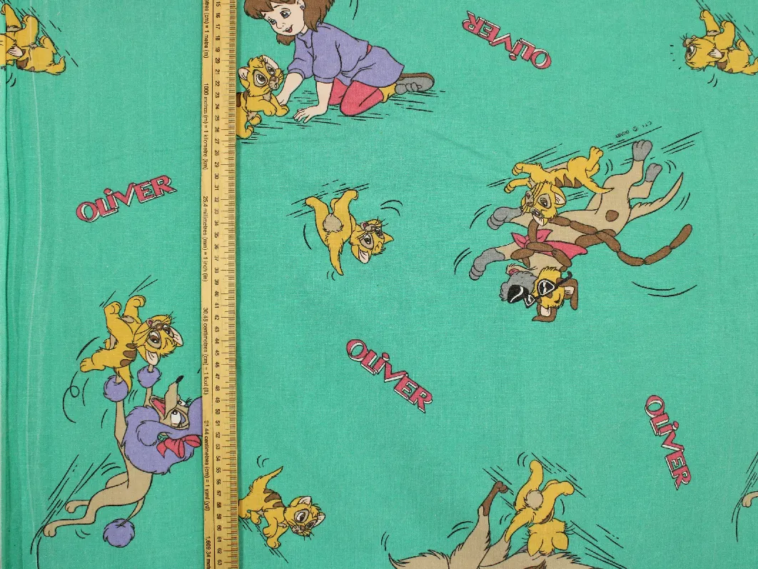 ディズニー、オリバー ニューヨーク子猫物語、キャラクタービンテージシーツ。解体生地