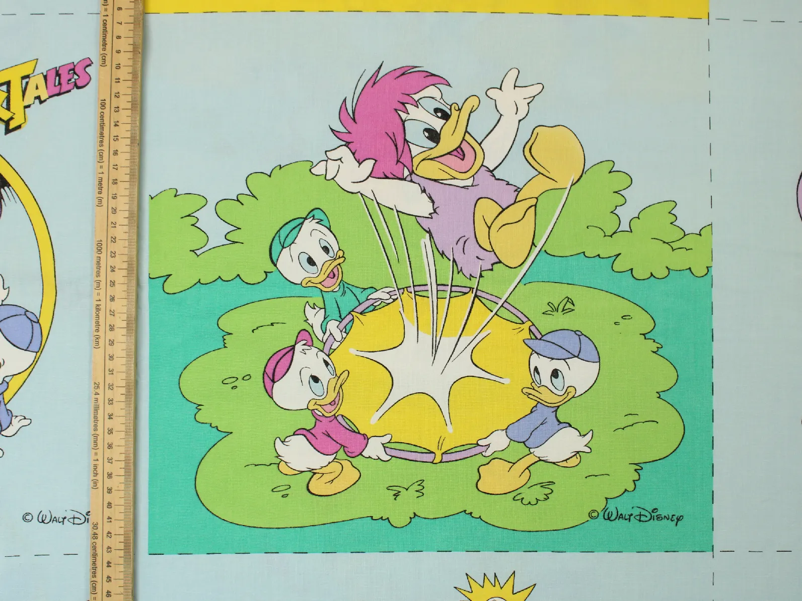 ヒューイ・デューイ・ルーイやスクルージなど、ダックファミリーがたくさんの絵柄。
