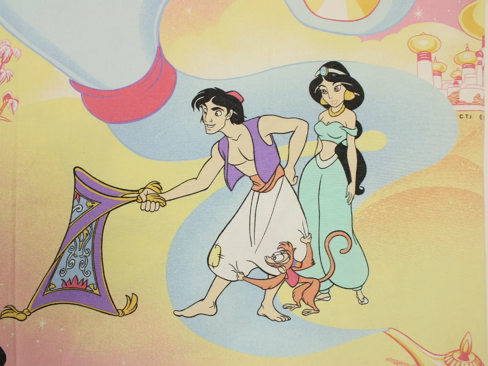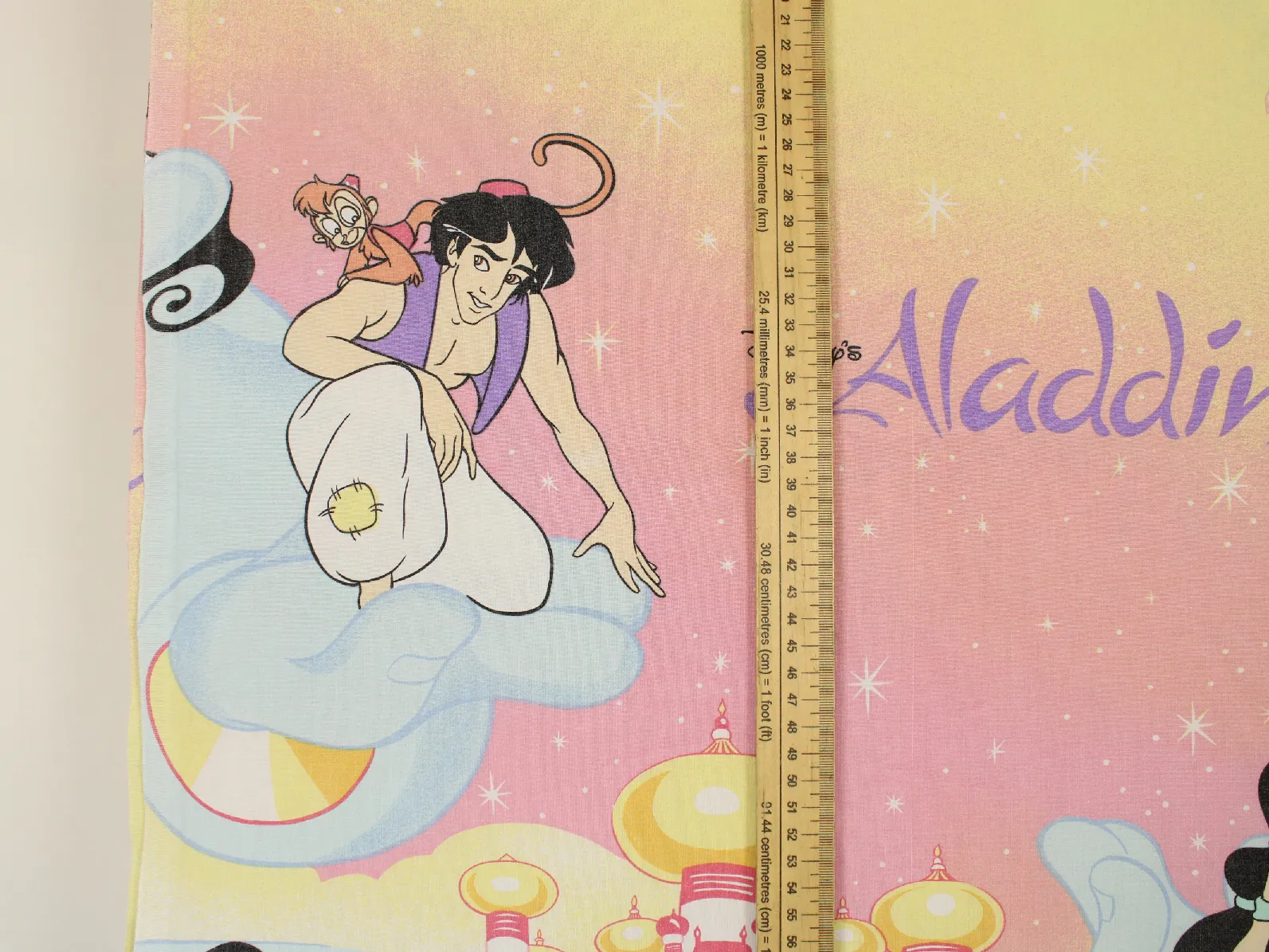 ディズニー、アラジン、キャラクタービンテージシーツ。解体生地。