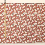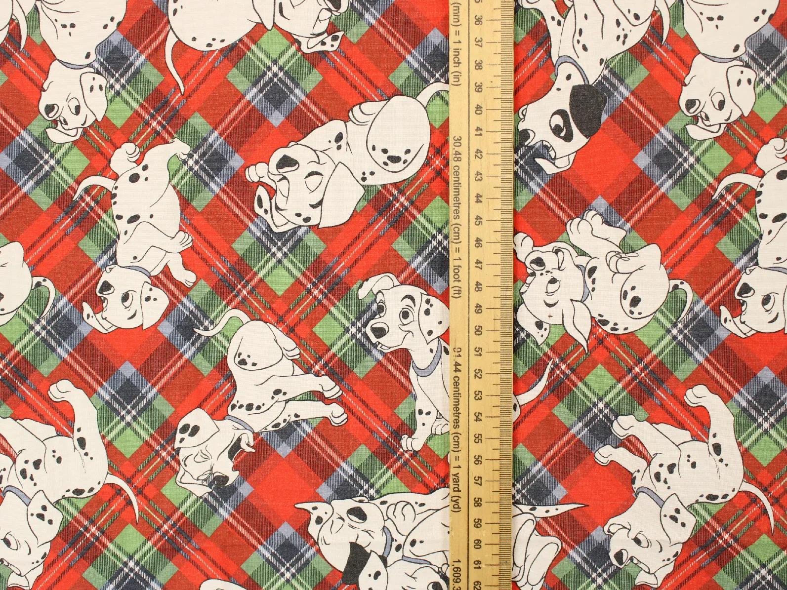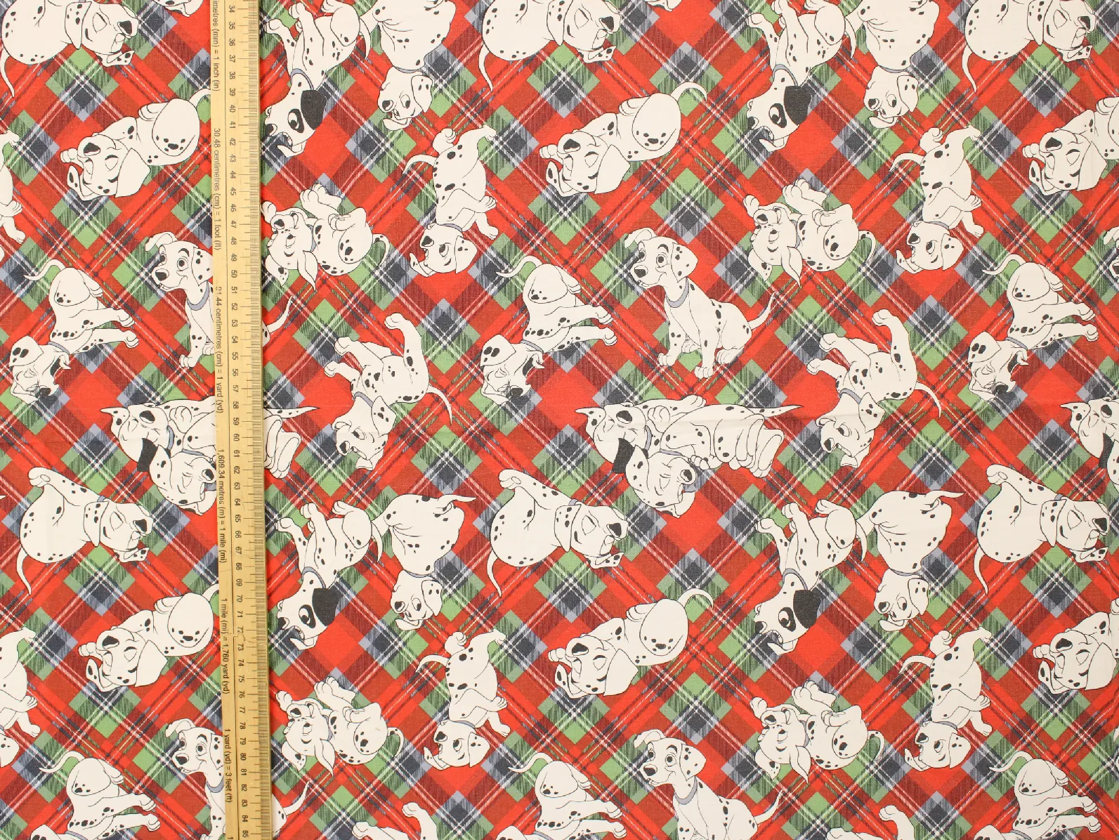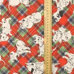 赤と緑ののタータンチェック地に小柄のわんちゃん達。