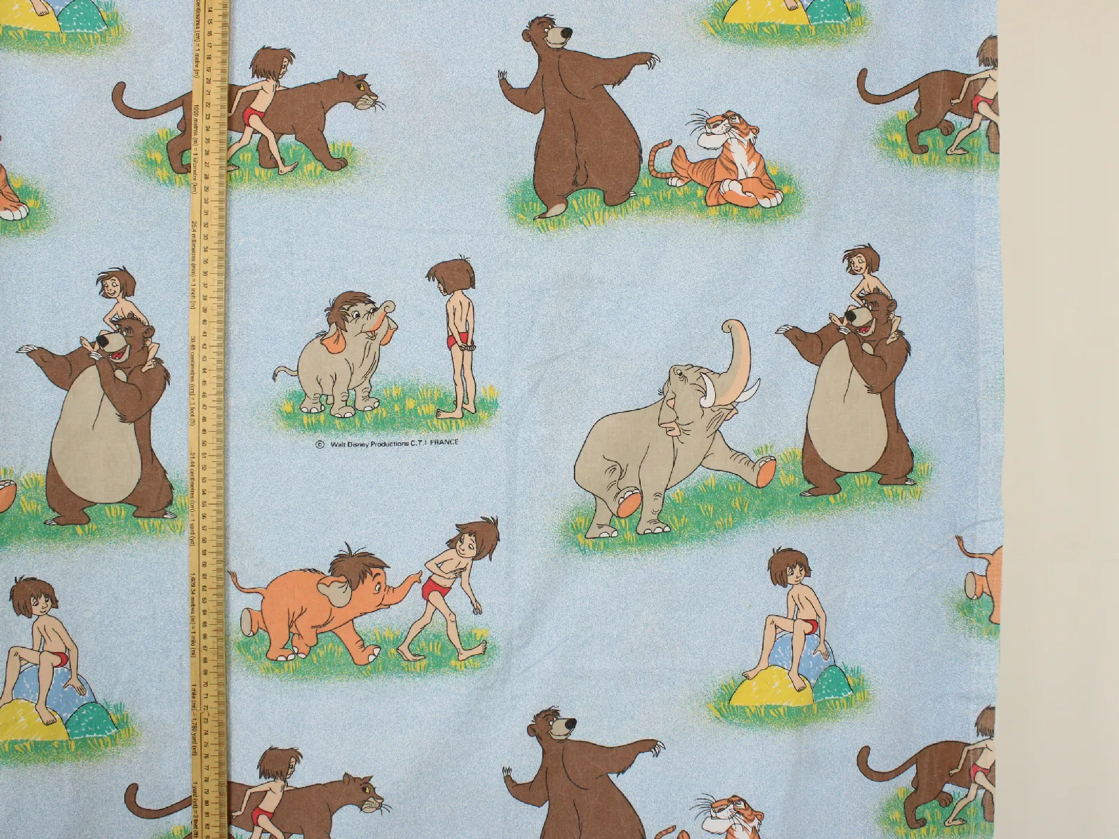 ディズニー、ジャングル・ブック、キャラクタービンテージシーツ。解体生地。
