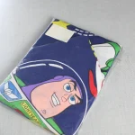 青地に大きな絵柄のバズのフラットシーツ&ピローカバーのベッドセットです。