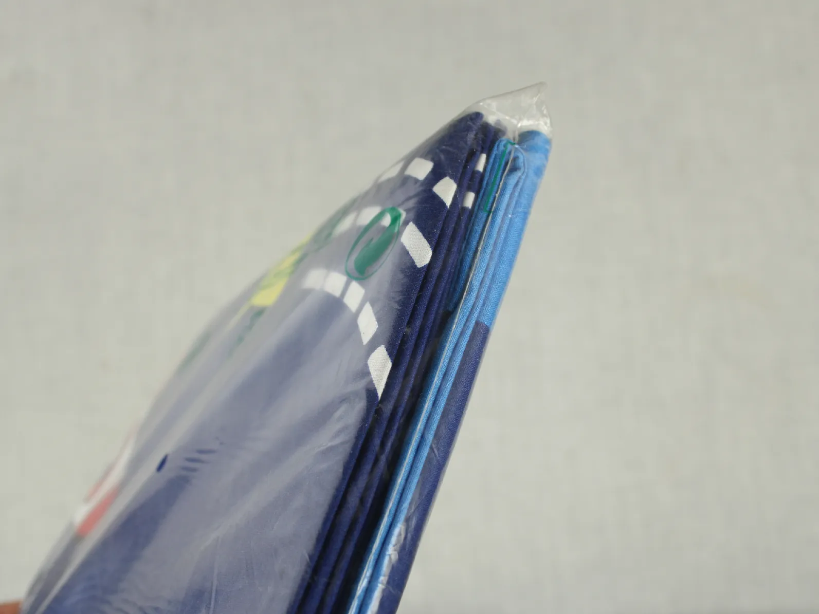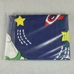 青地に大きな絵柄のバズのフラットシーツ&ピローカバーのベッドセットです。
