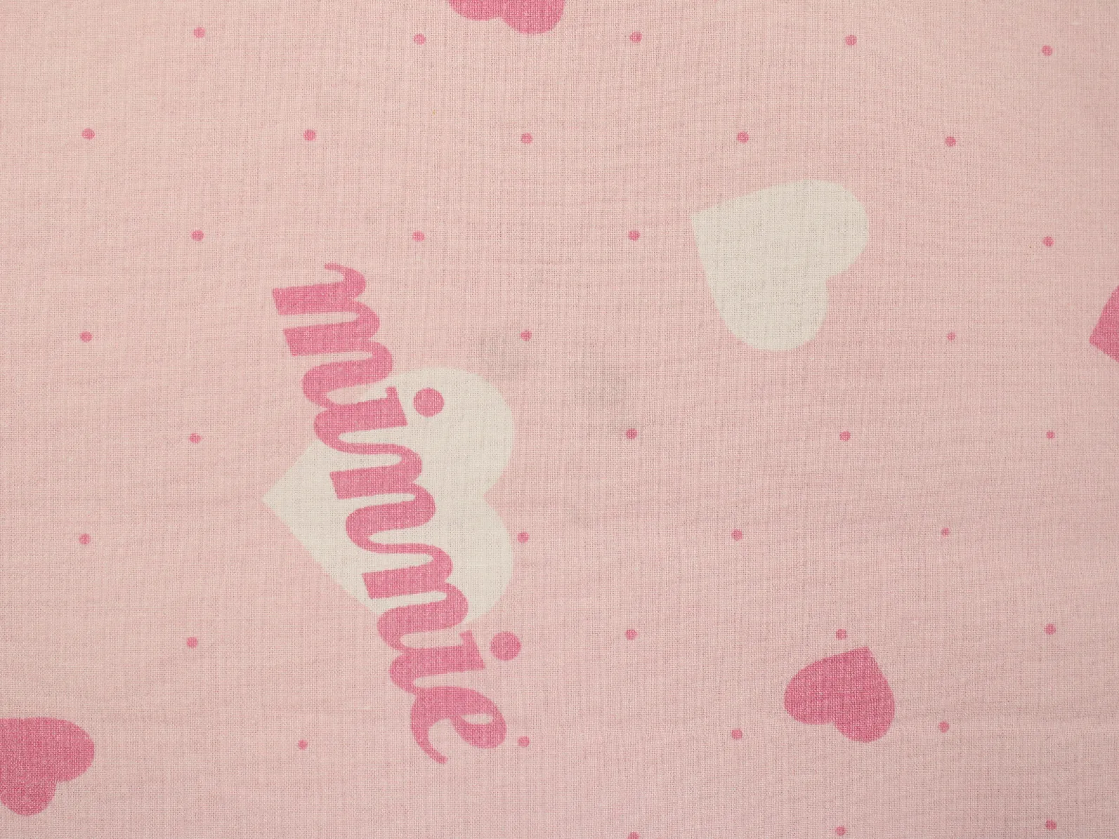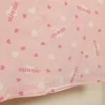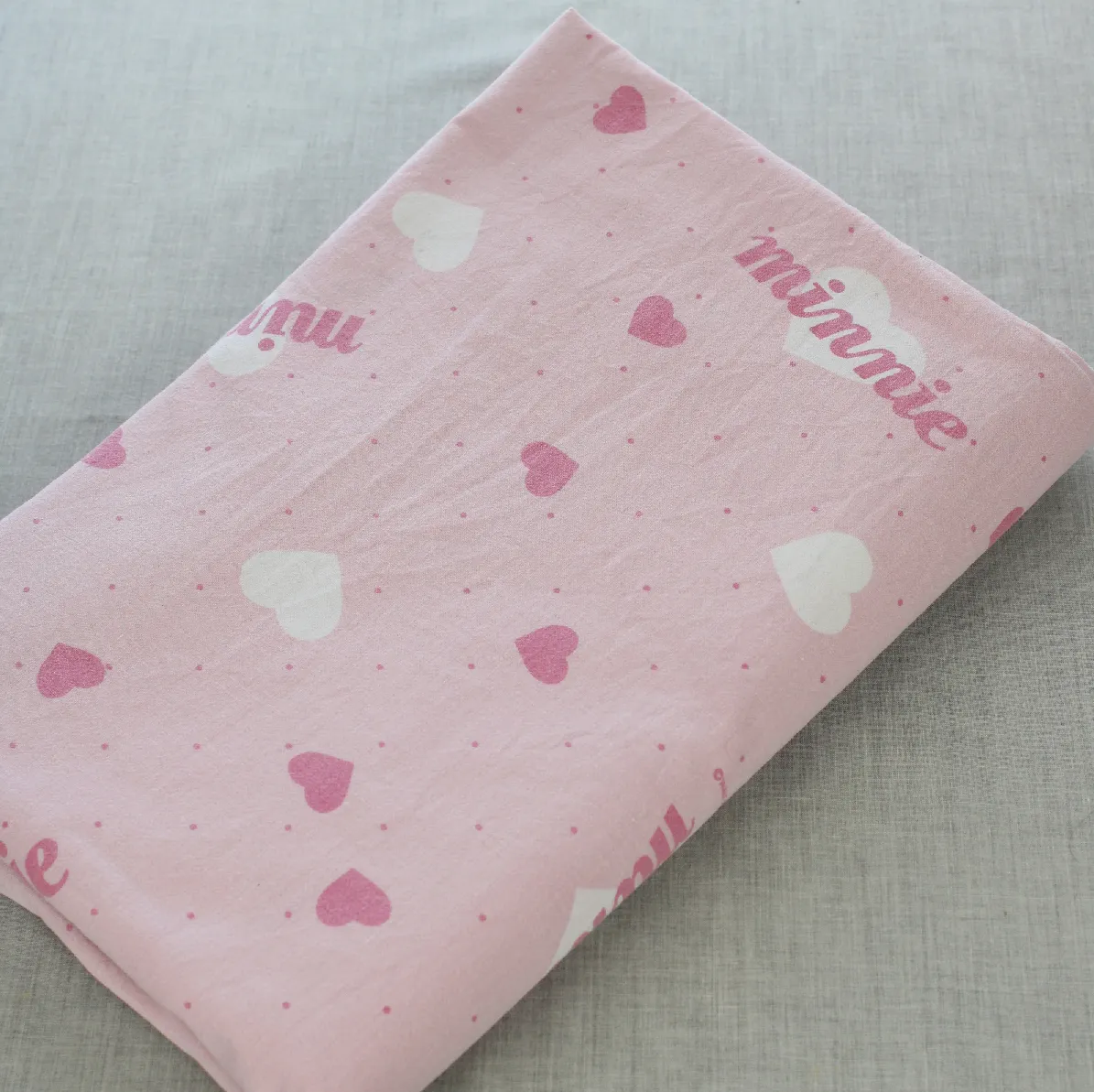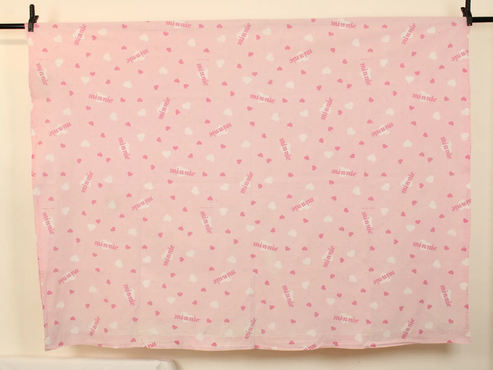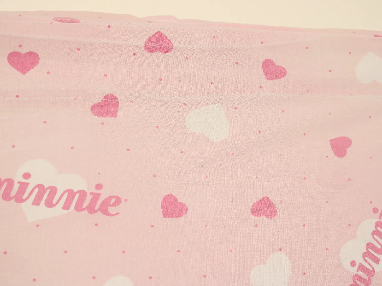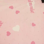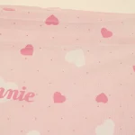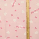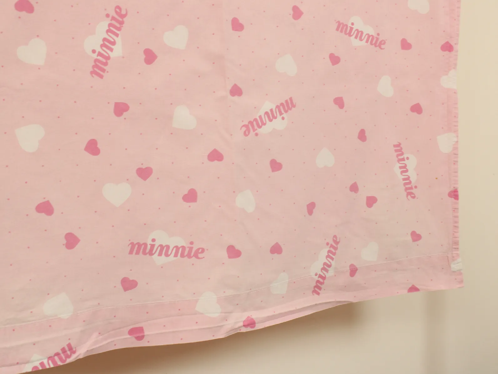 ピンク地にハートとminnieのロゴ柄のフラットシーツです。
