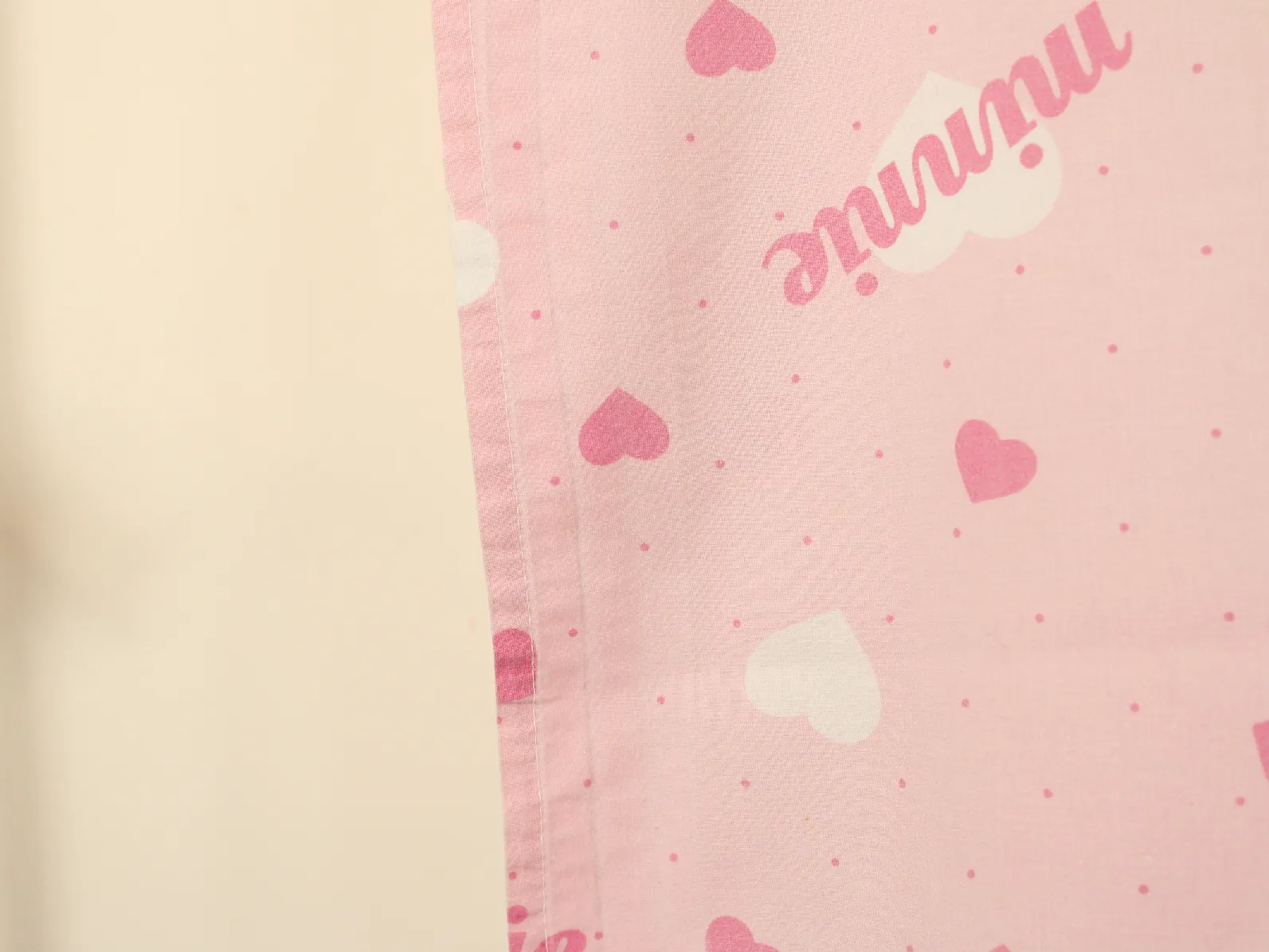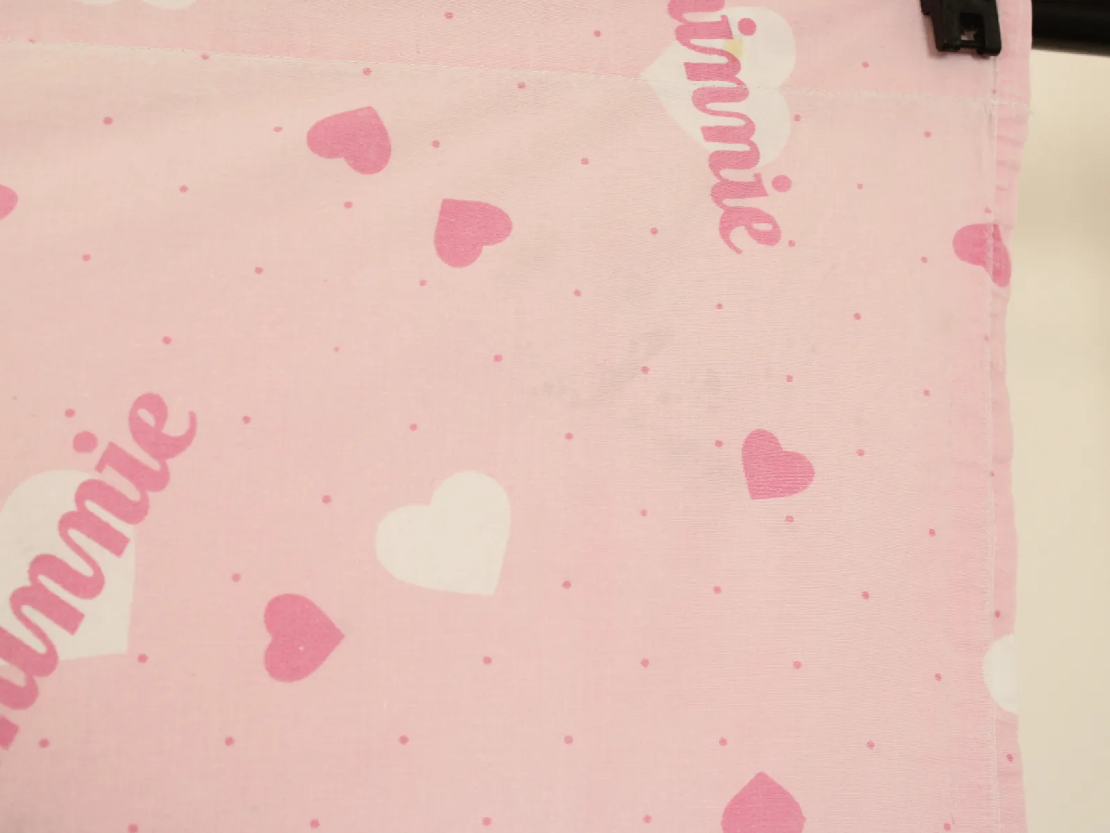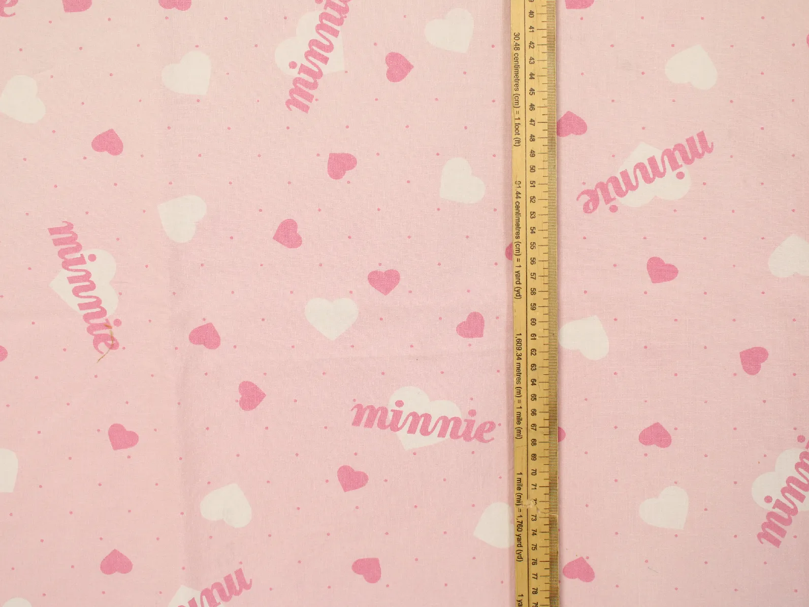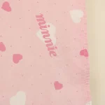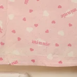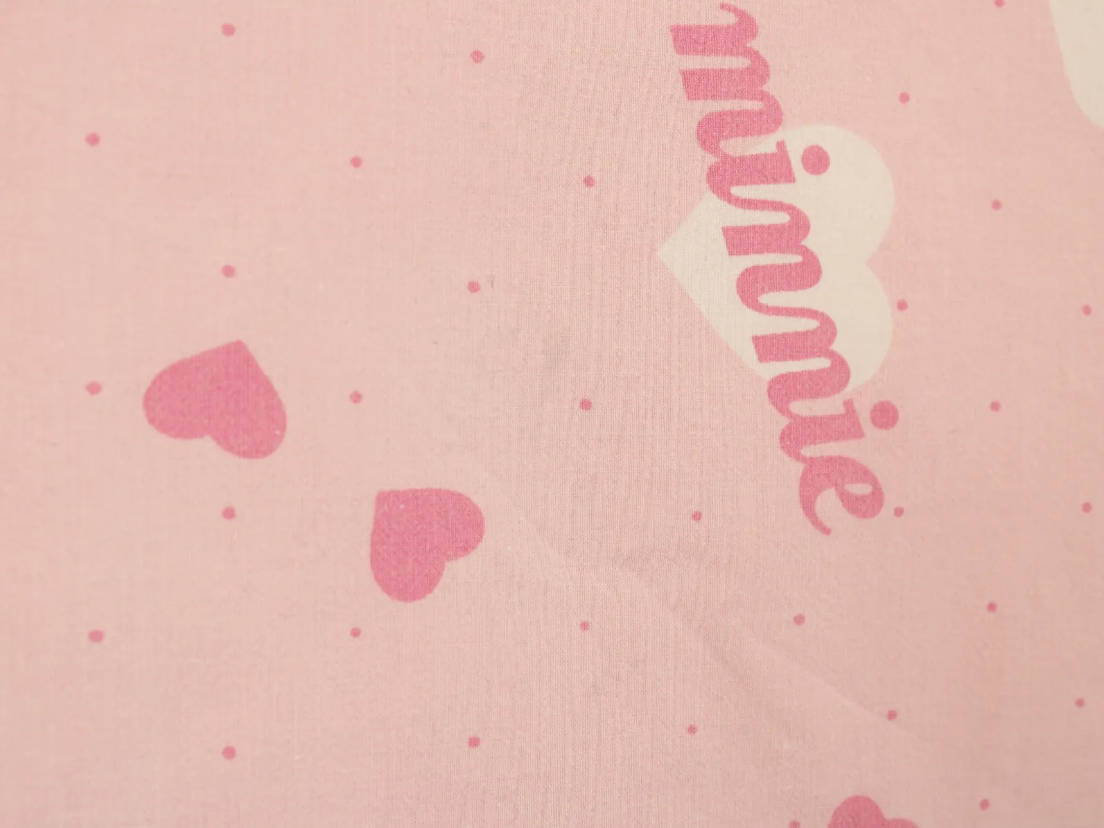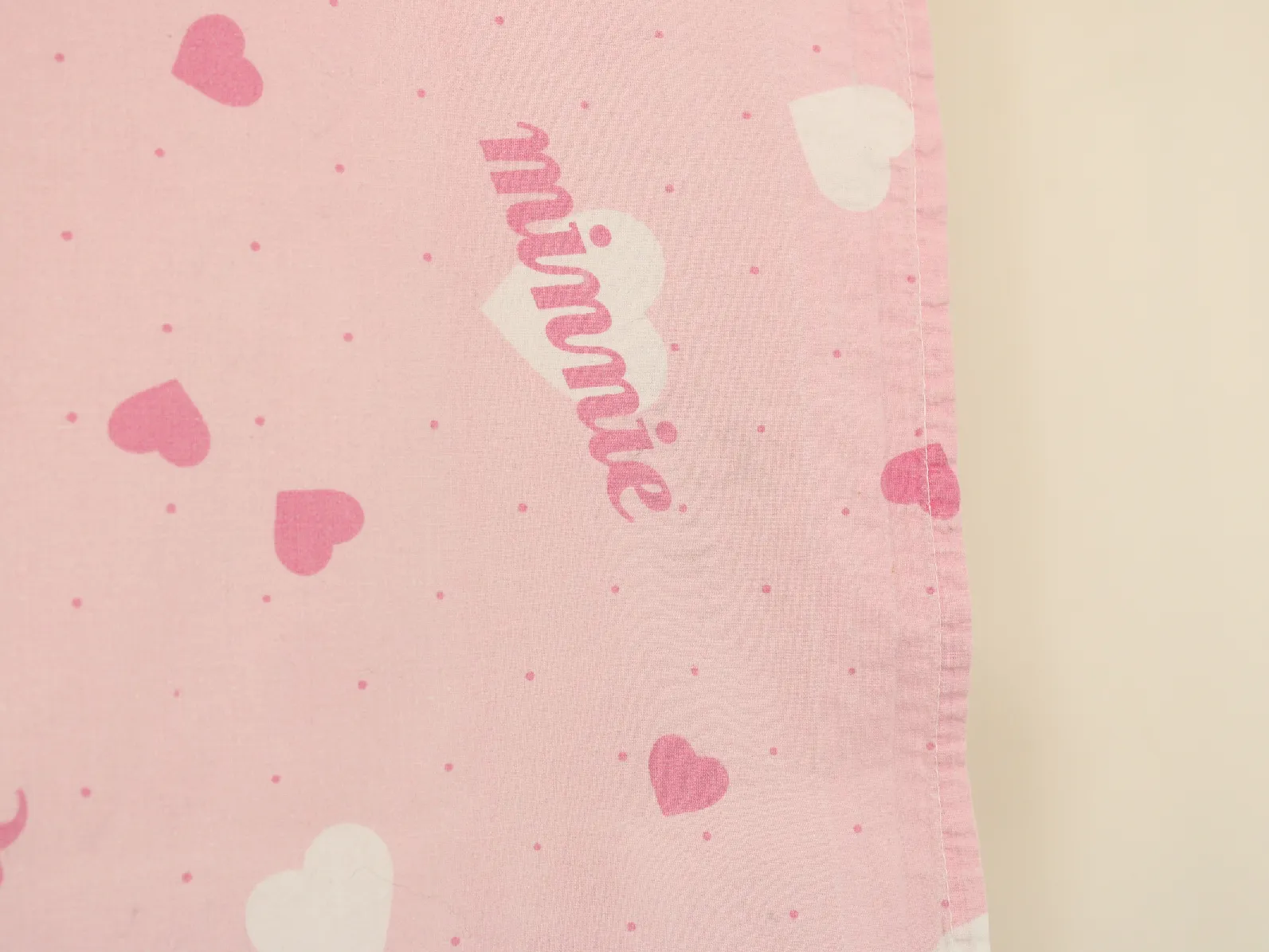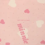 ピンク地にハートとminnieのロゴ柄のフラットシーツです。
