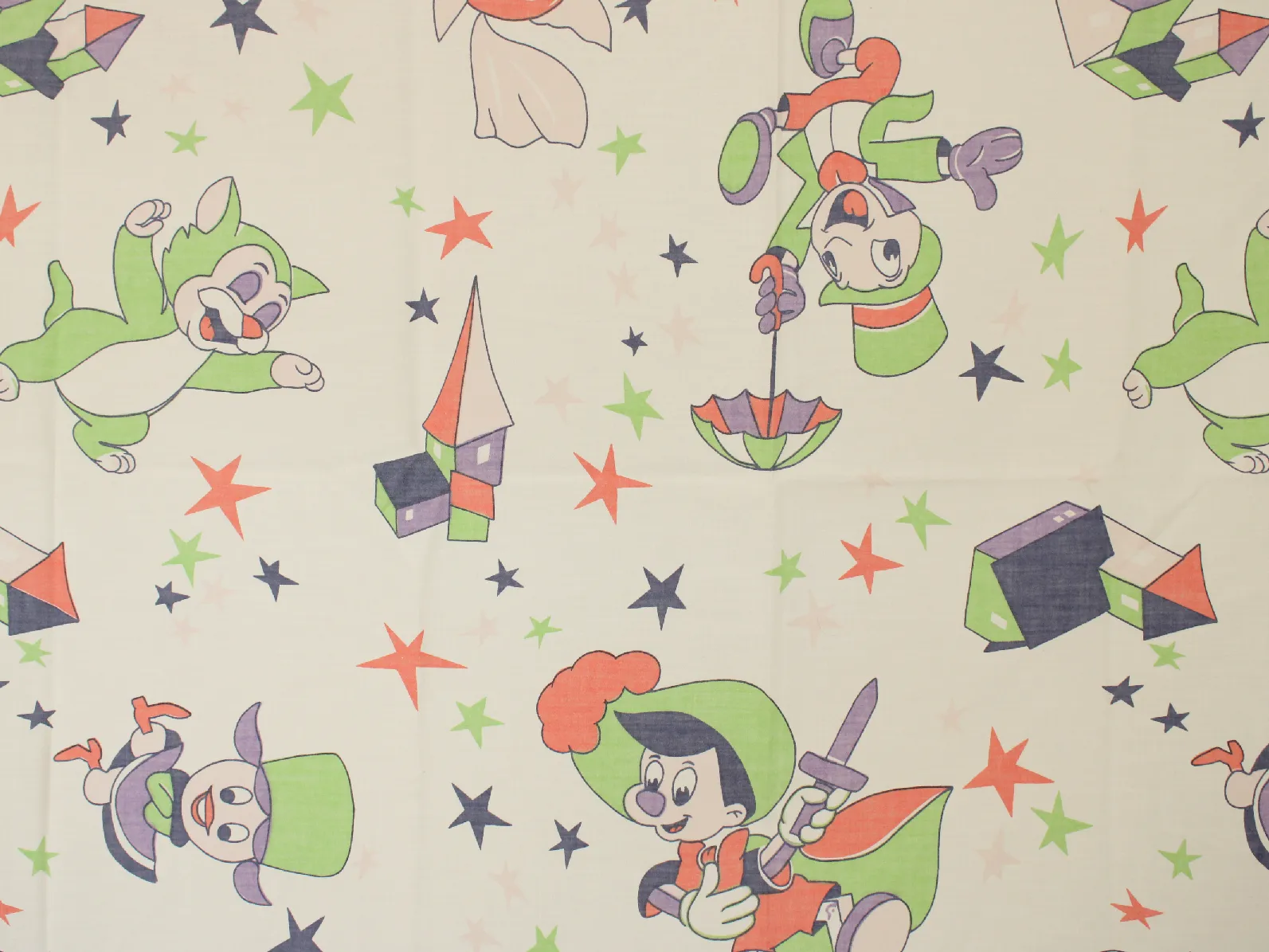 WALT DISNEY PRODUCTIONS、ピノキオ、キャラクタービンテージシーツ。