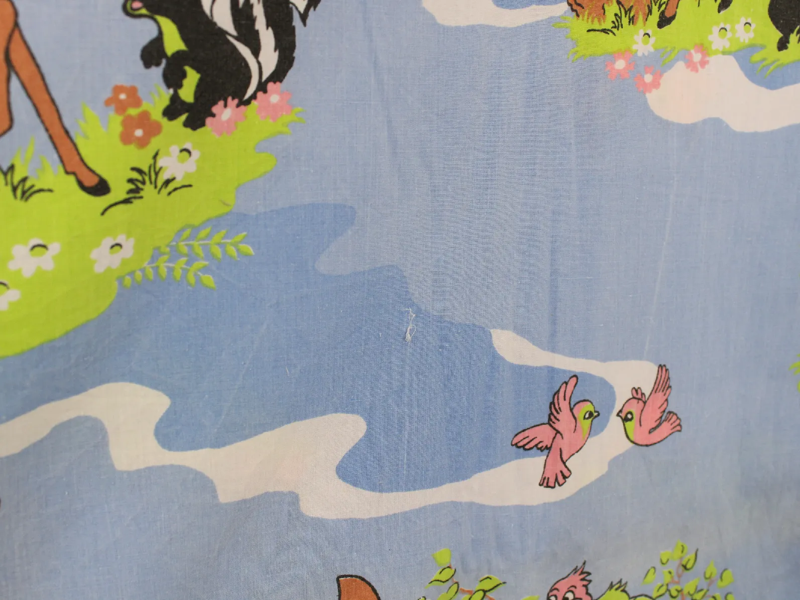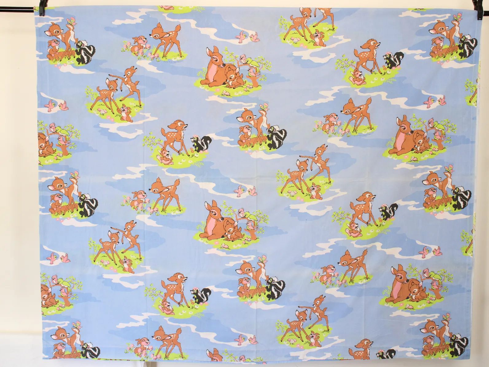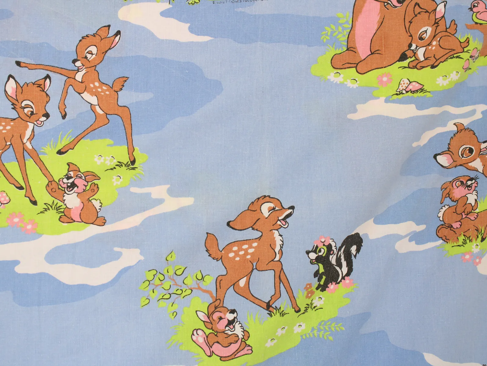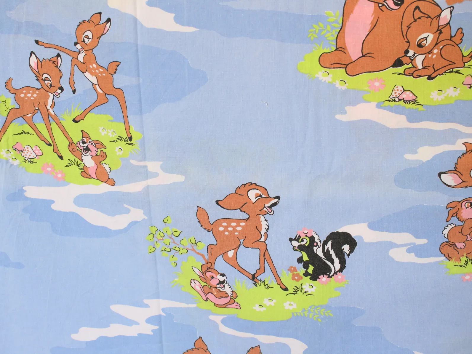 水色地にバンビと仲間たちが描かれたフラットシーツです。