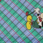 緑と赤のチェック地にレトロファッションが可愛い