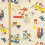 キャラクターがたくさんの、白地にレトロな絵柄。
