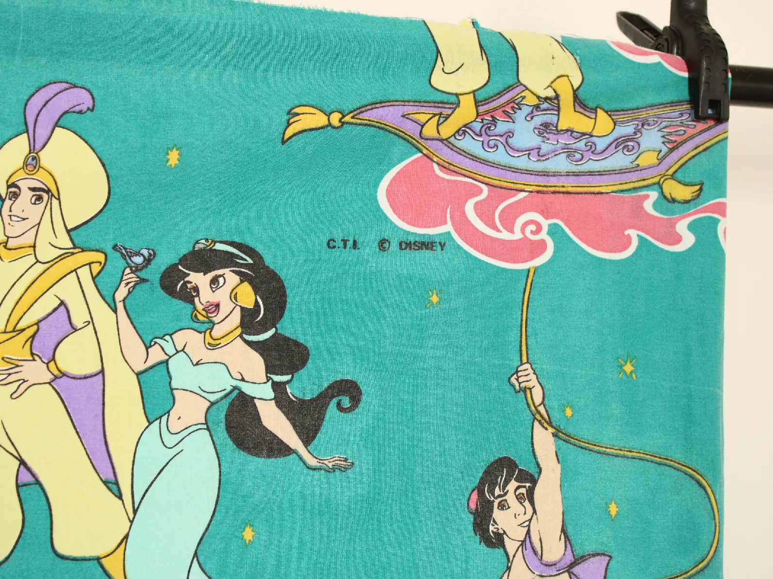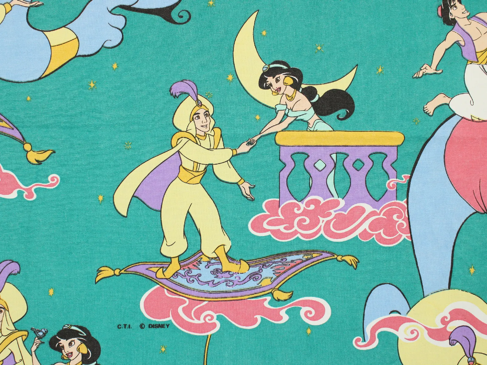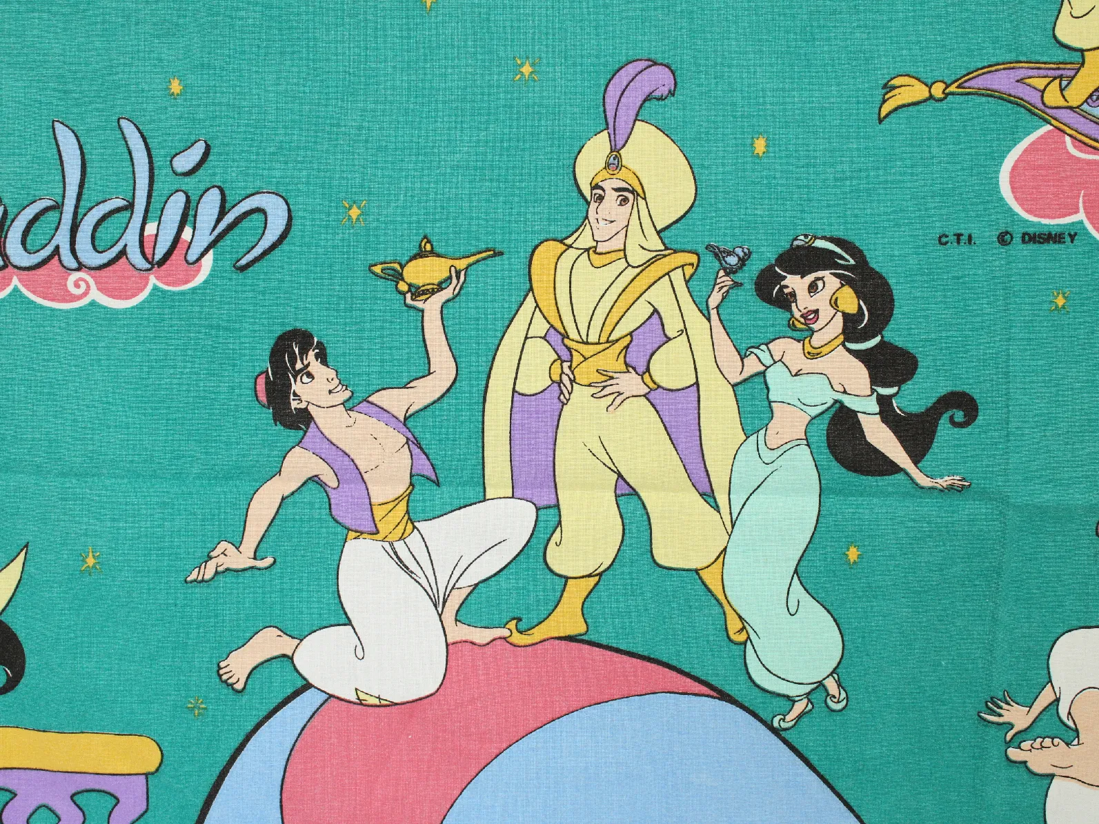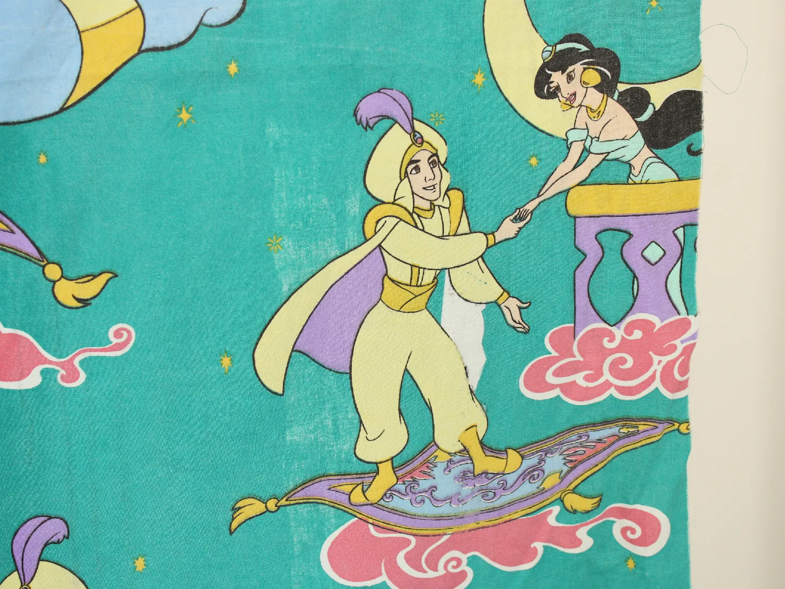 ディズニー、アラジン、キャラクタービンテージシーツ。解体生地。
