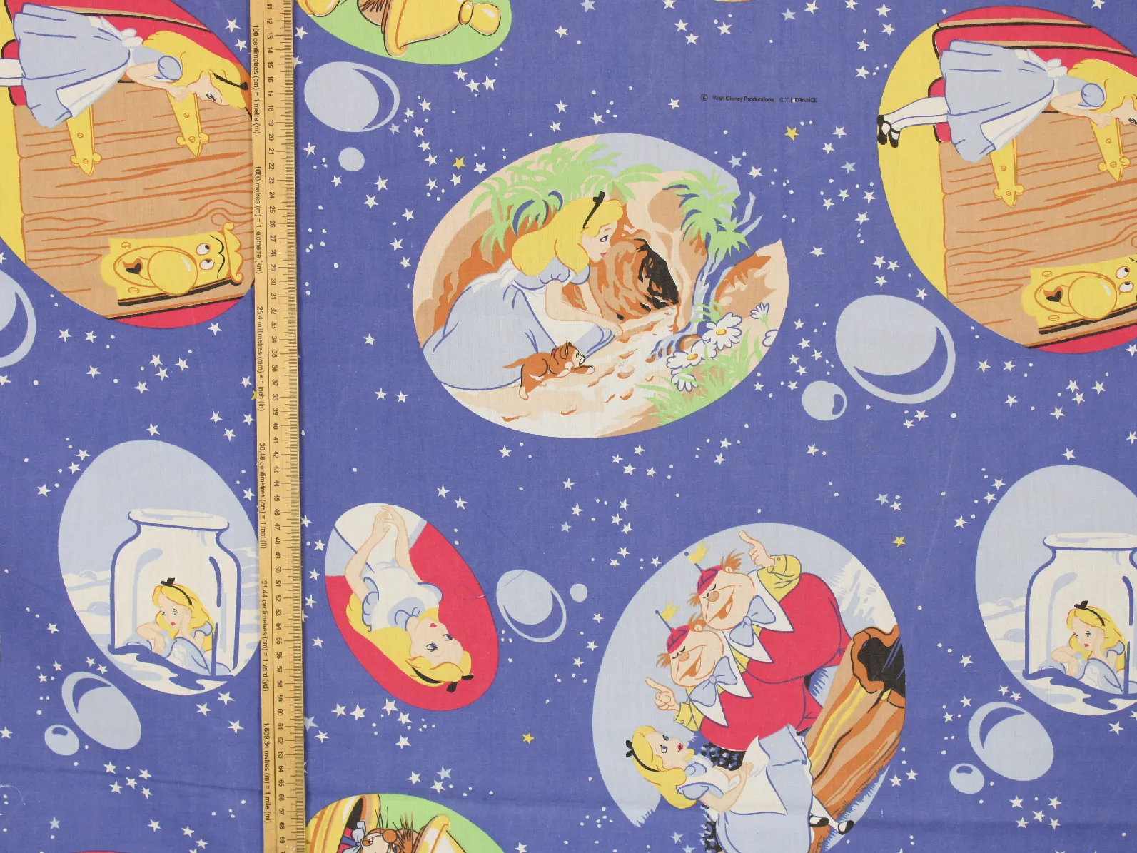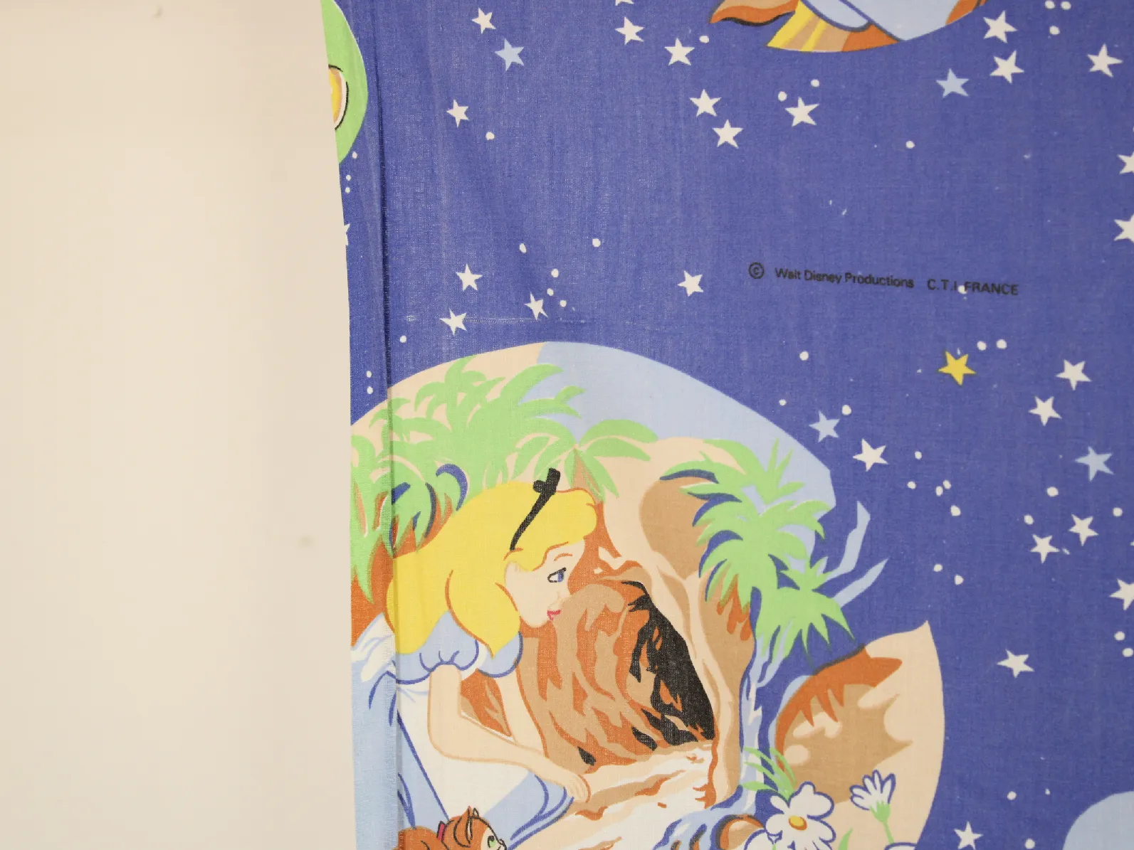 WALT DISNEY PRODUCTIONS、不思議の国のアリス、キャラクタービンテージシーツ。解体生地。