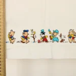 シーツの下端にレトロな絵柄のプリントリボンが付いています。