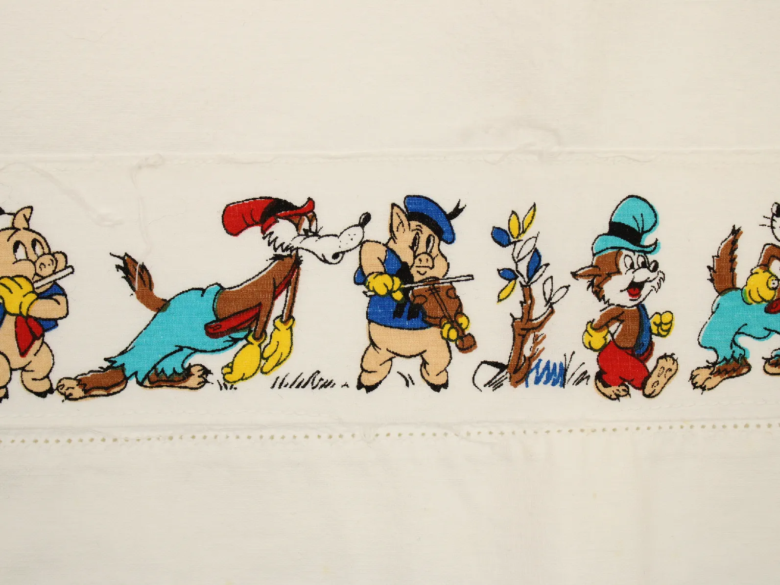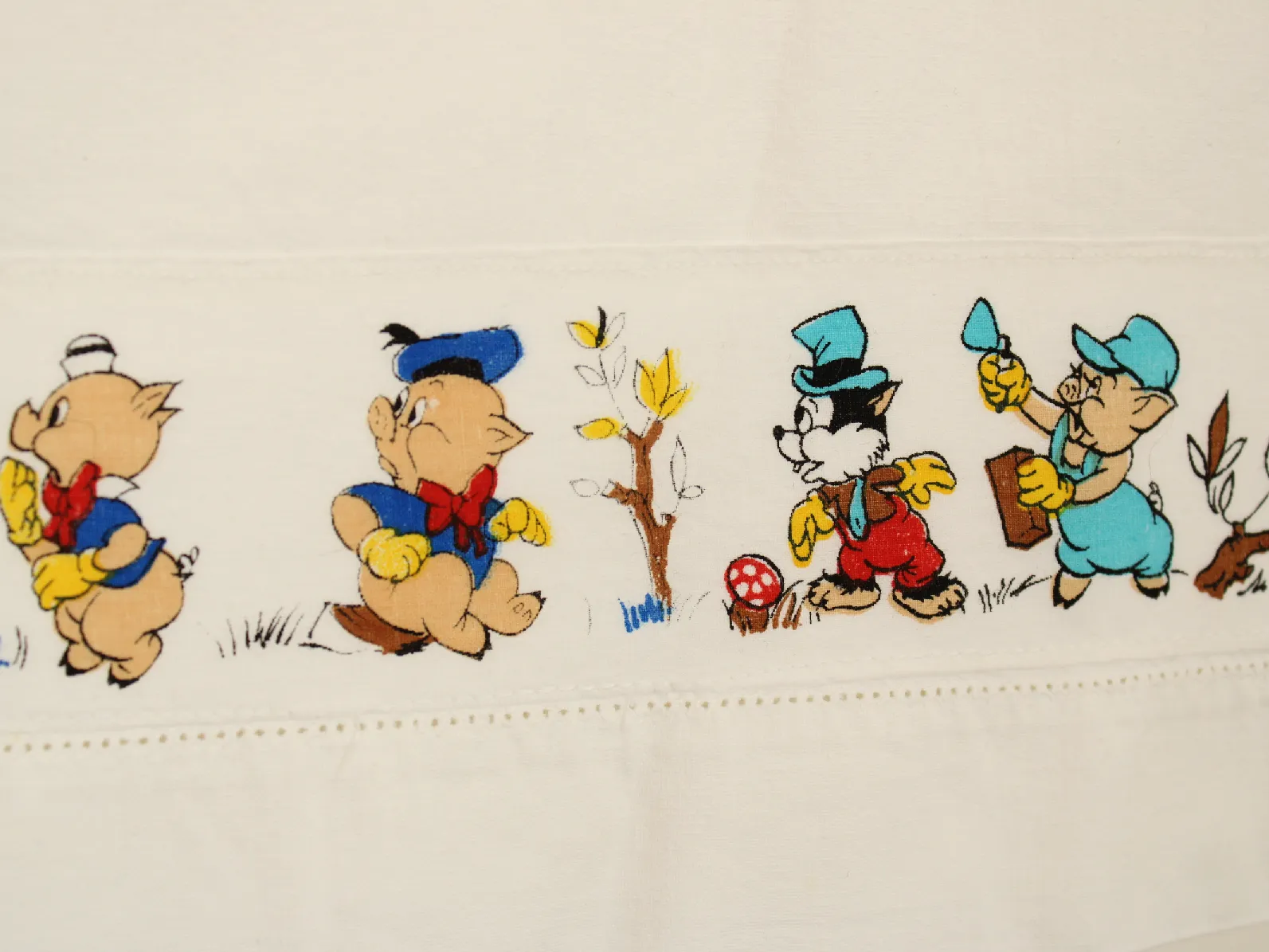 ディズニー、三匹の子ぶた、キャラクタービンテージシーツ。