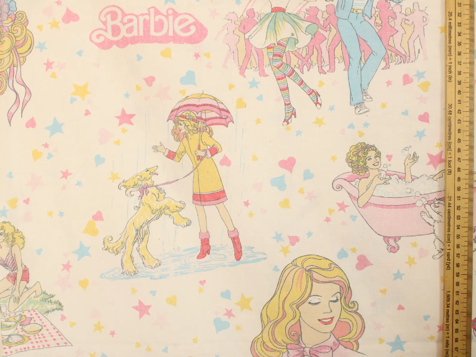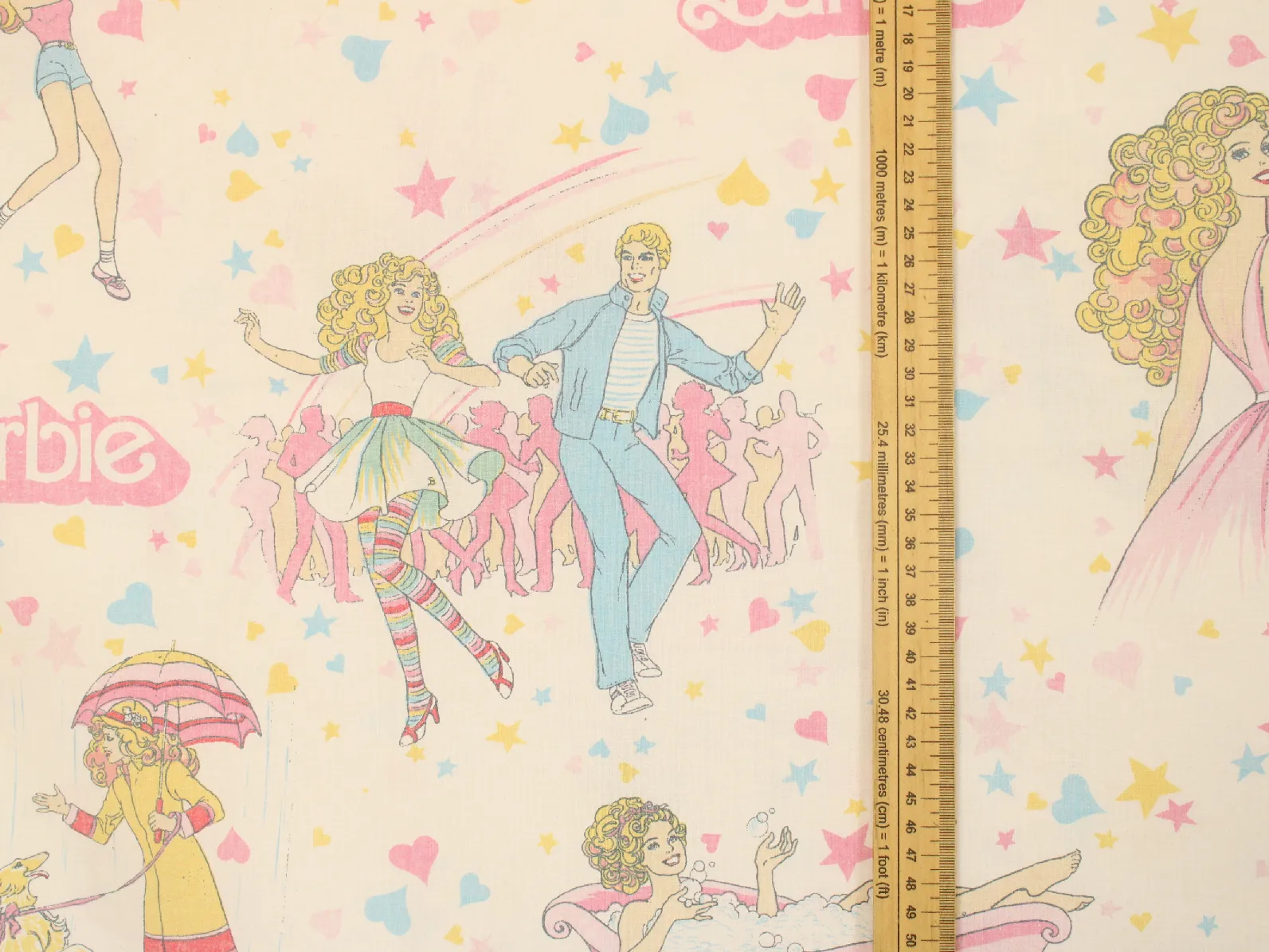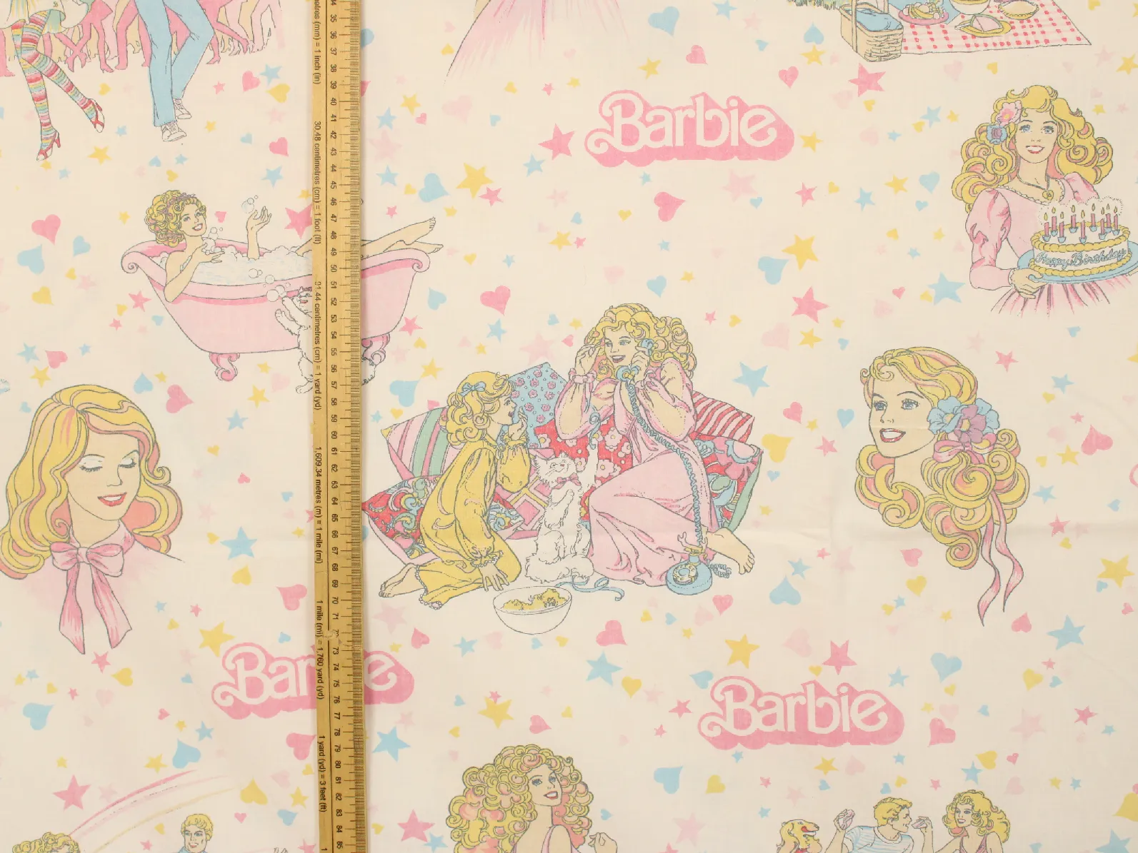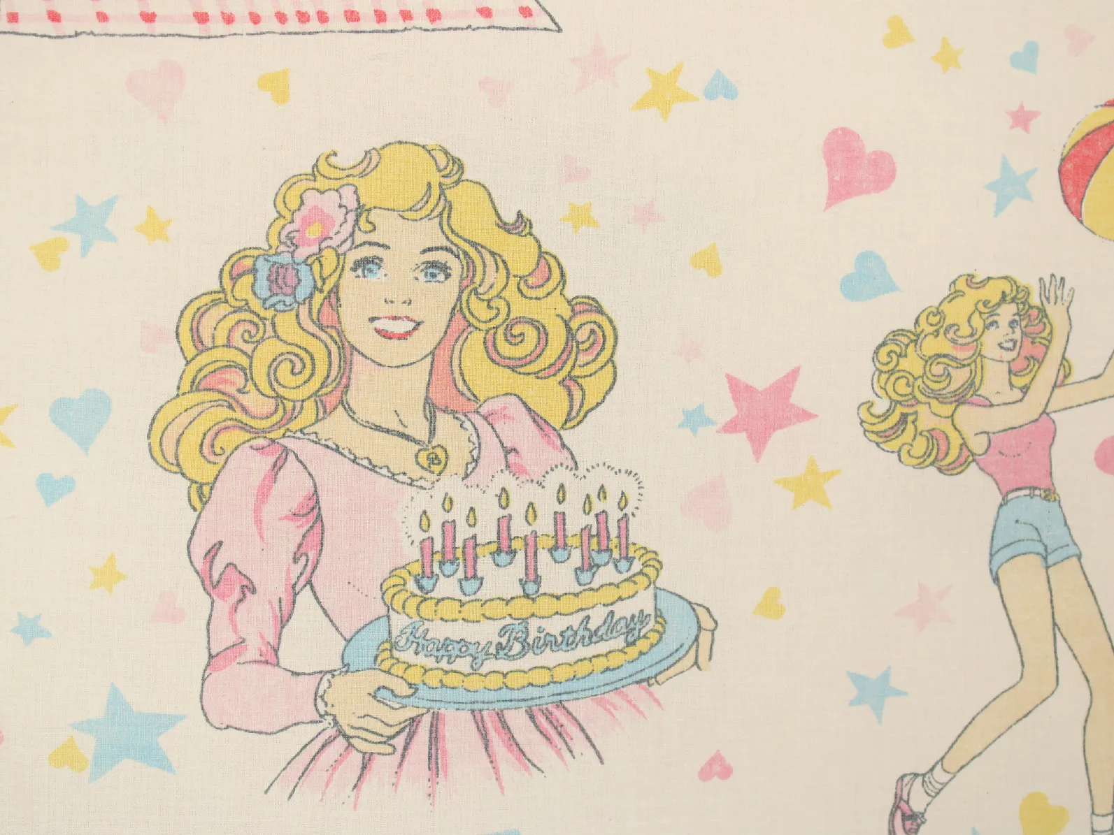 星とハートがちりばめられた、カラフルポップなデザインの80年代バービー。