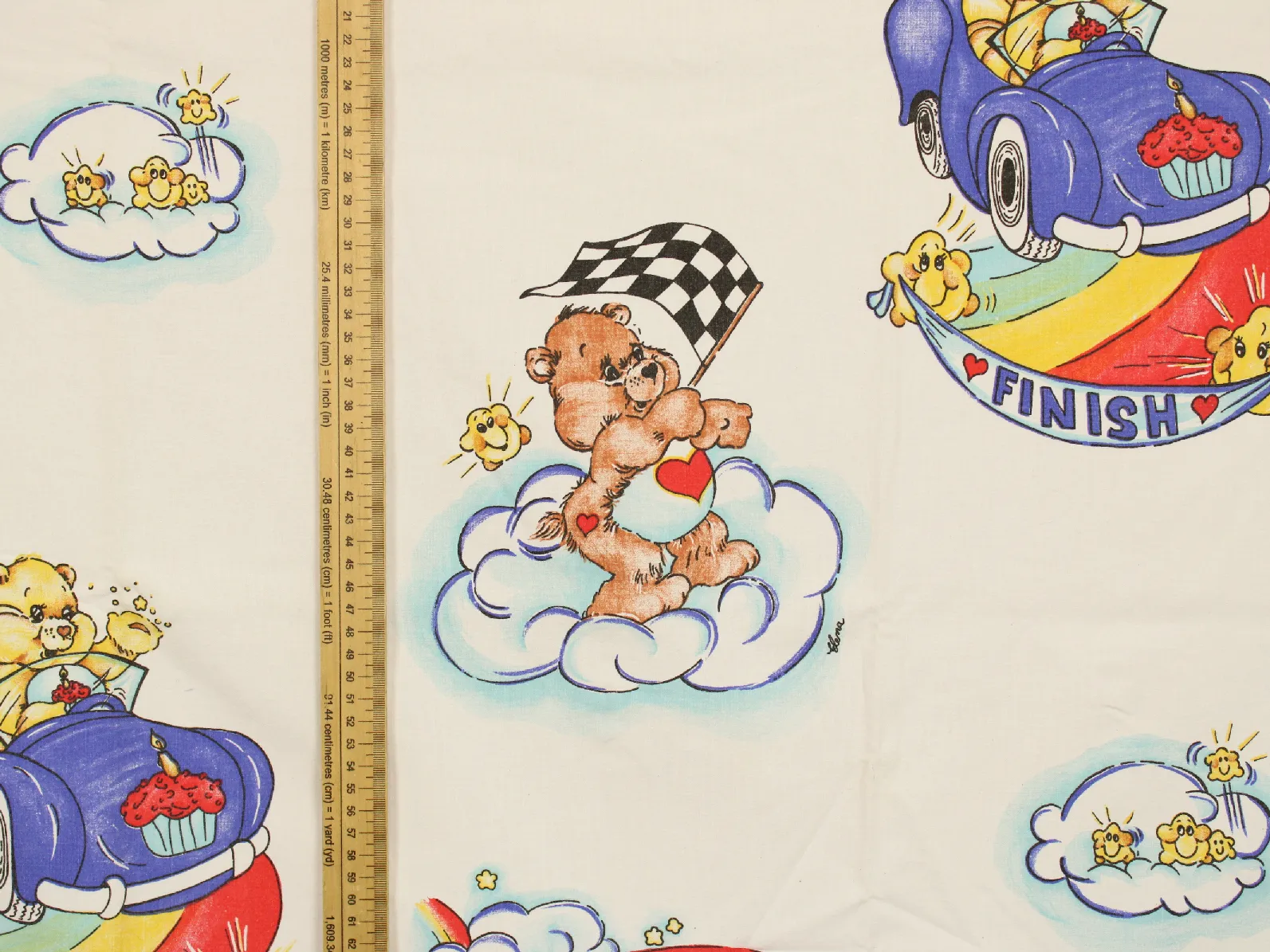 ケアベア(Care Bears)、キャラクタービンテージシーツ。解体生地。
