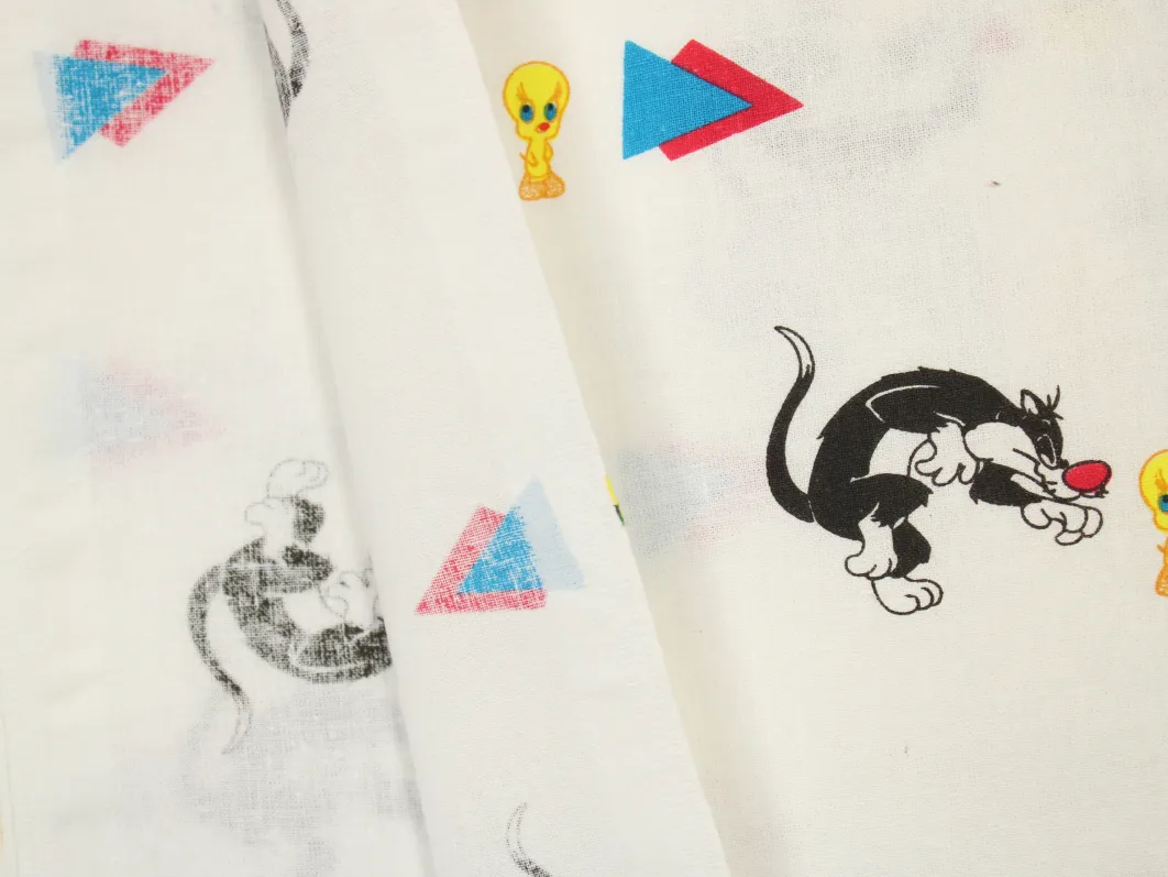 ルーニー・テューンズ、シルベスター&トゥイーティー、キャラクタービンテージシーツ。解体生地。