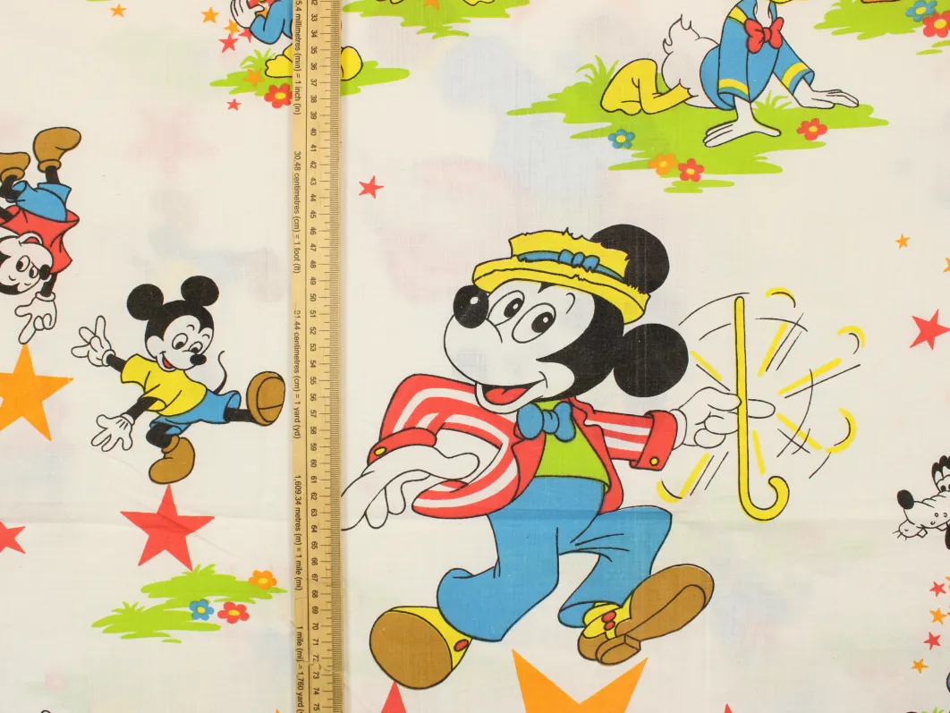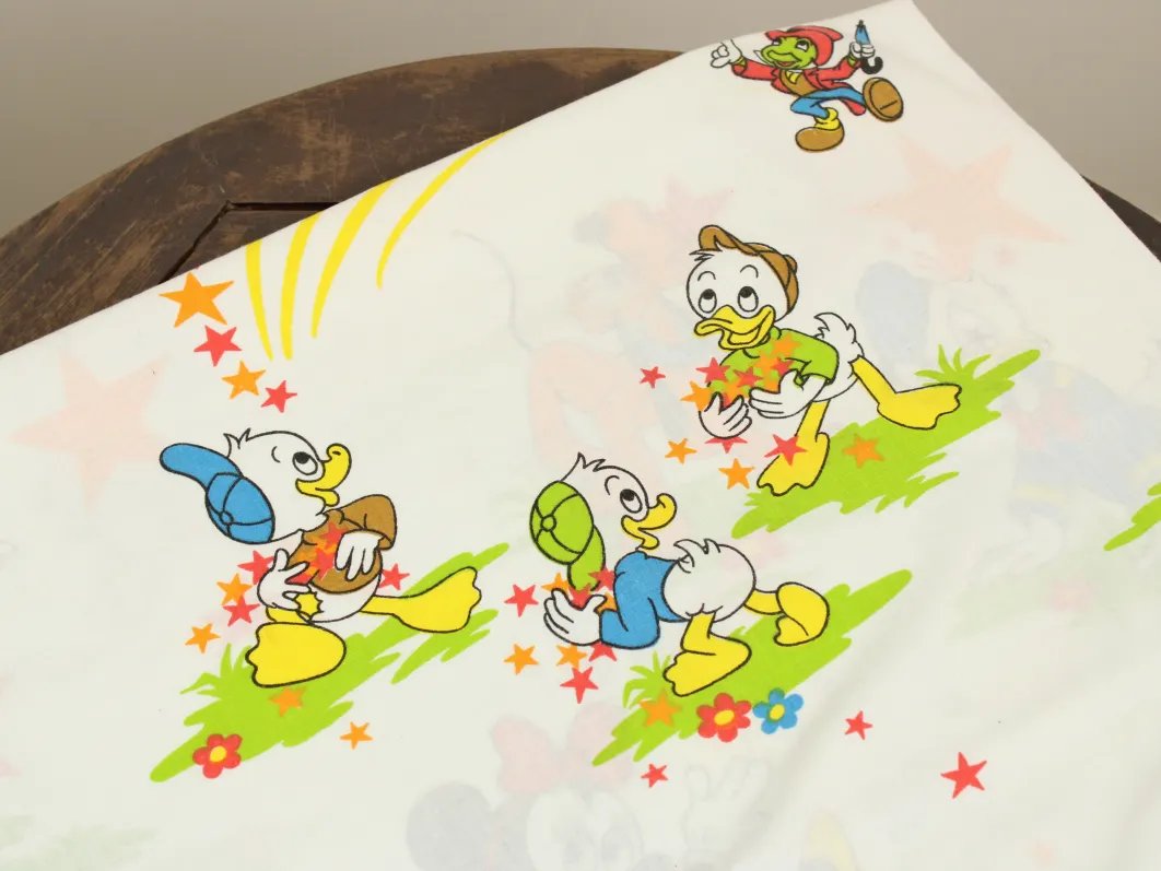 ディズニー、ミッキー&フレンズ、キャラクタービンテージシーツ。解体生地