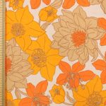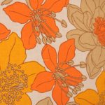 鮮やかなオレンジと落ち着いた茶色の配色で、