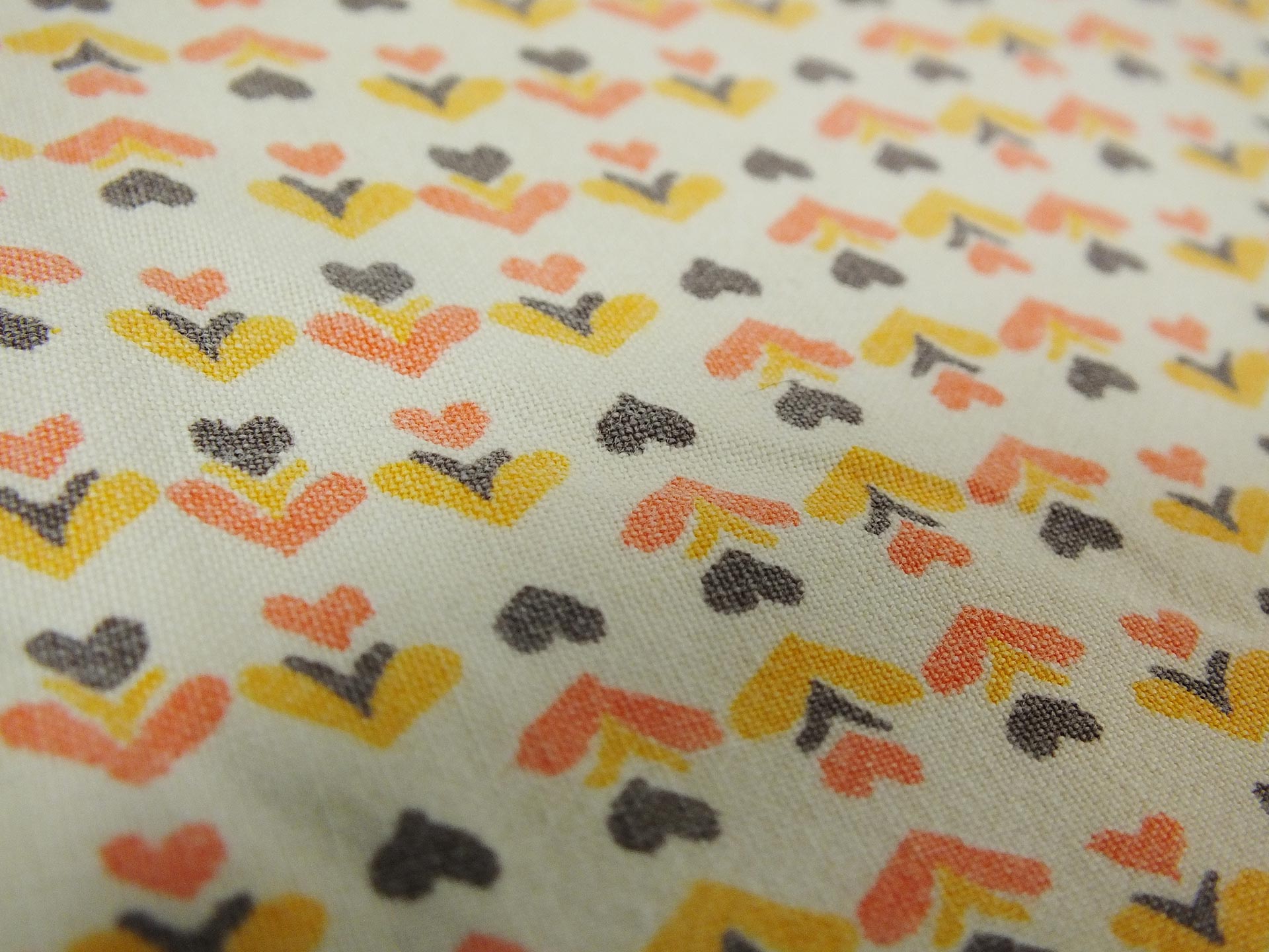55*65 レトロ かわいい ハート 小花 オレンジ