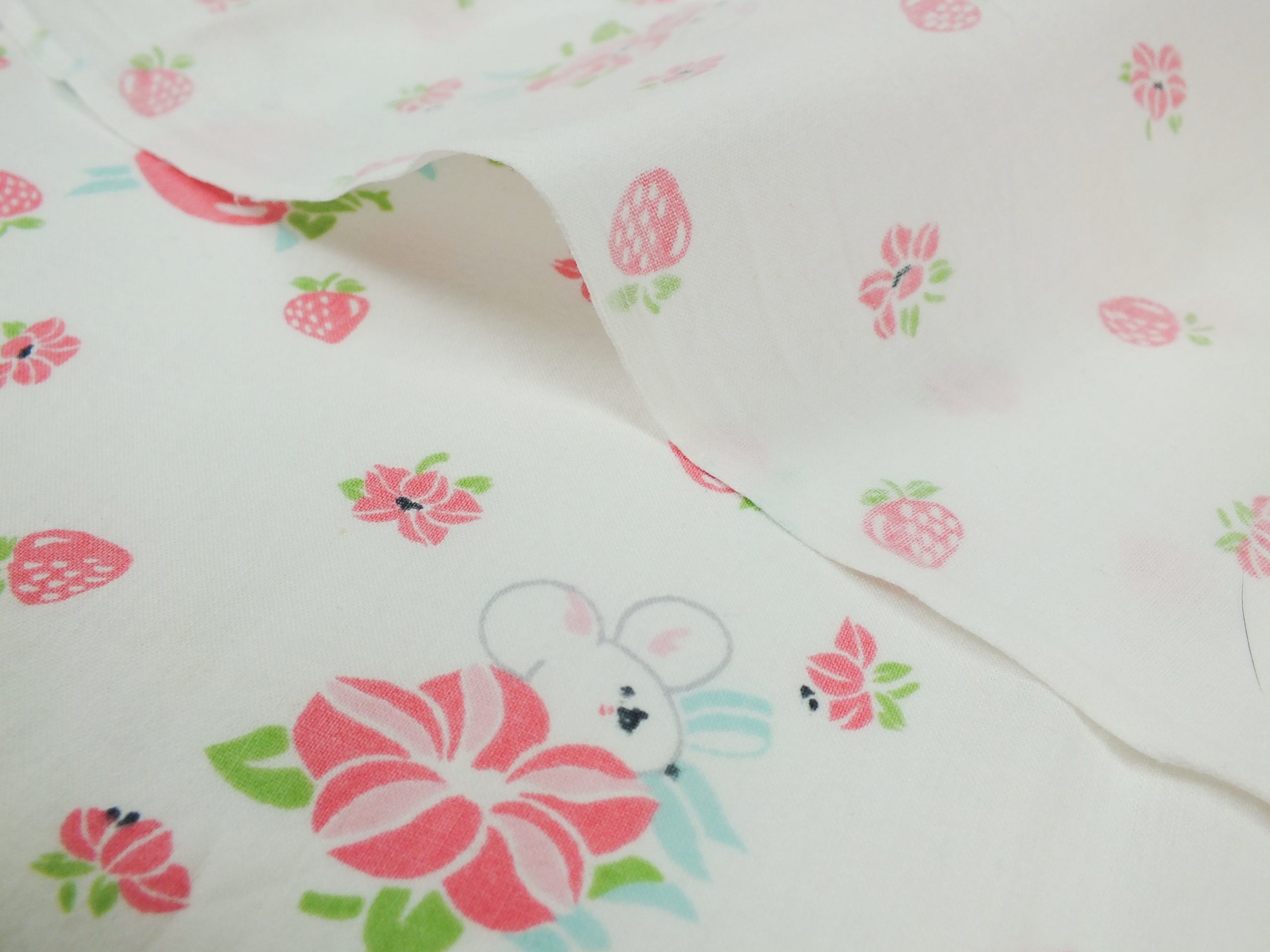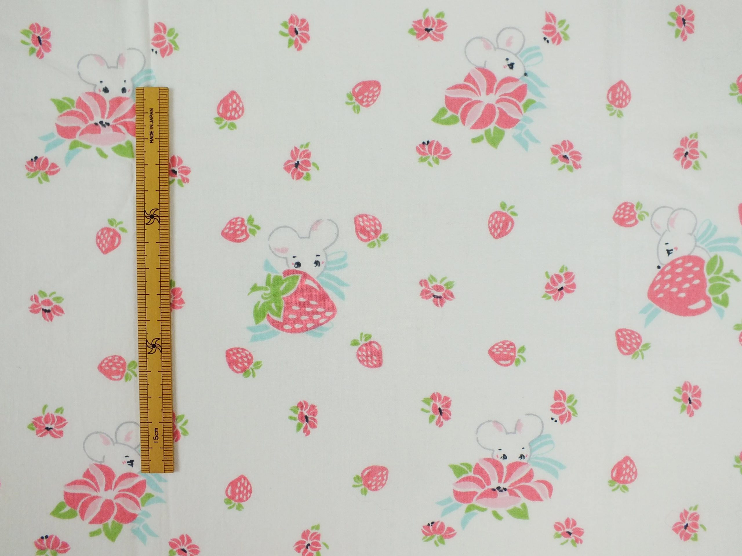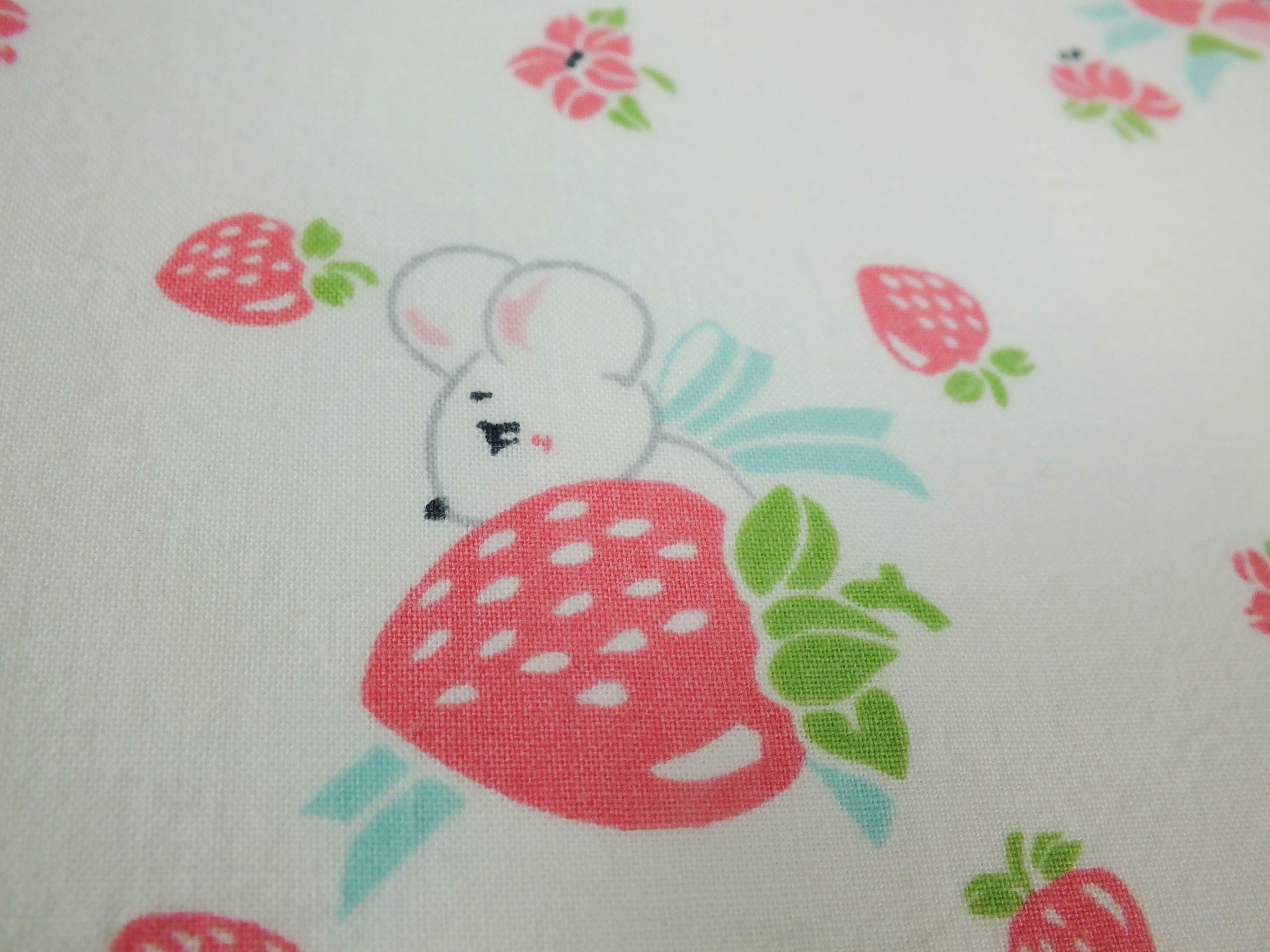 いちご畑に隠れたネズミ柄ファブリック。