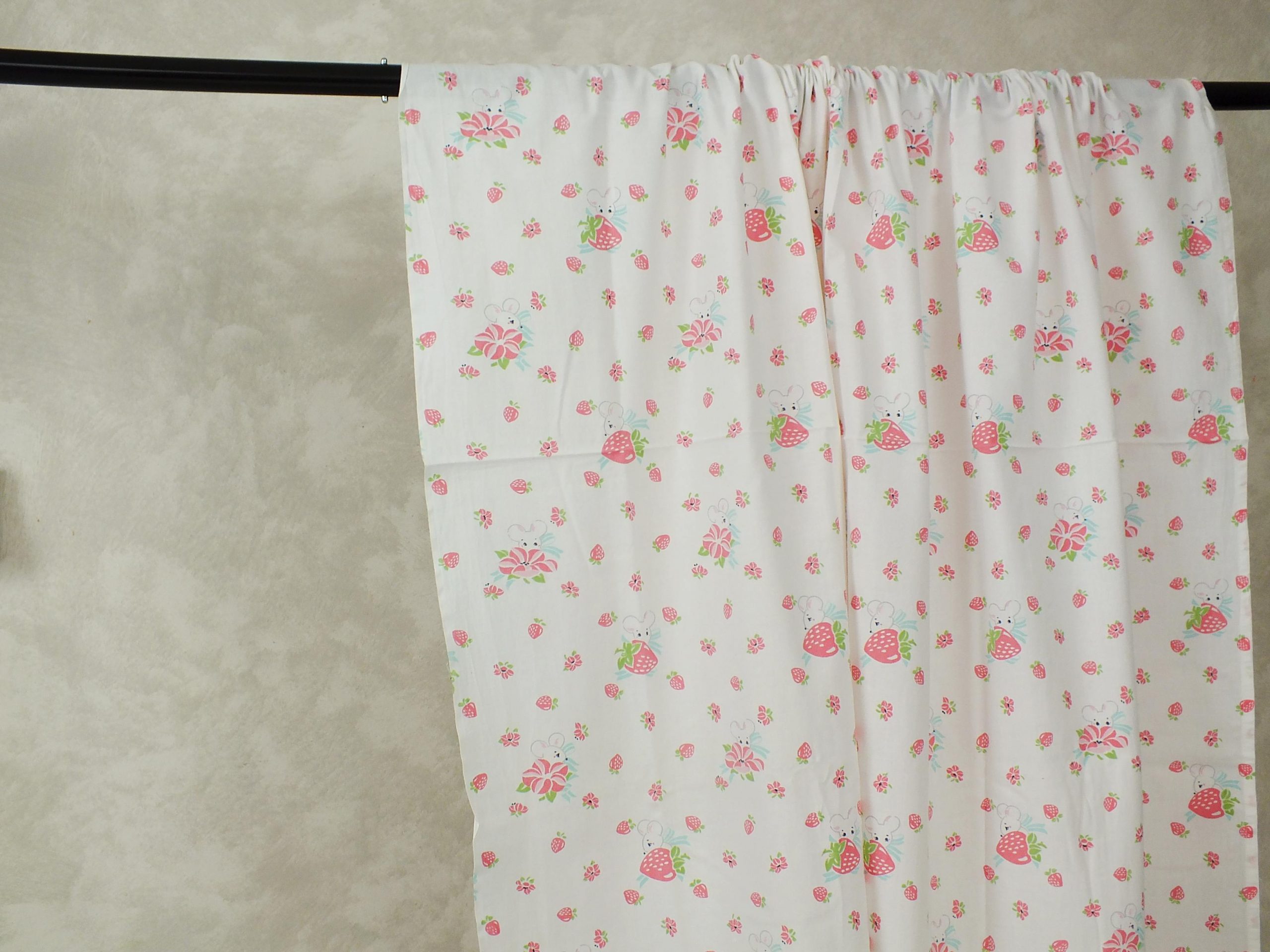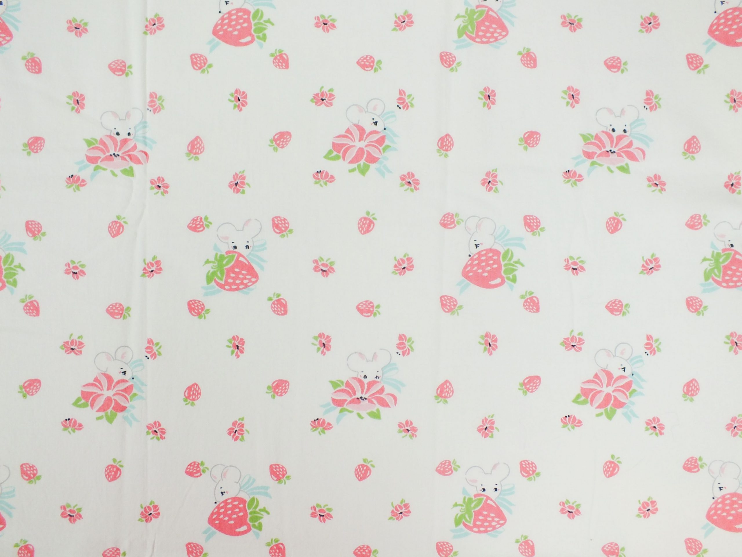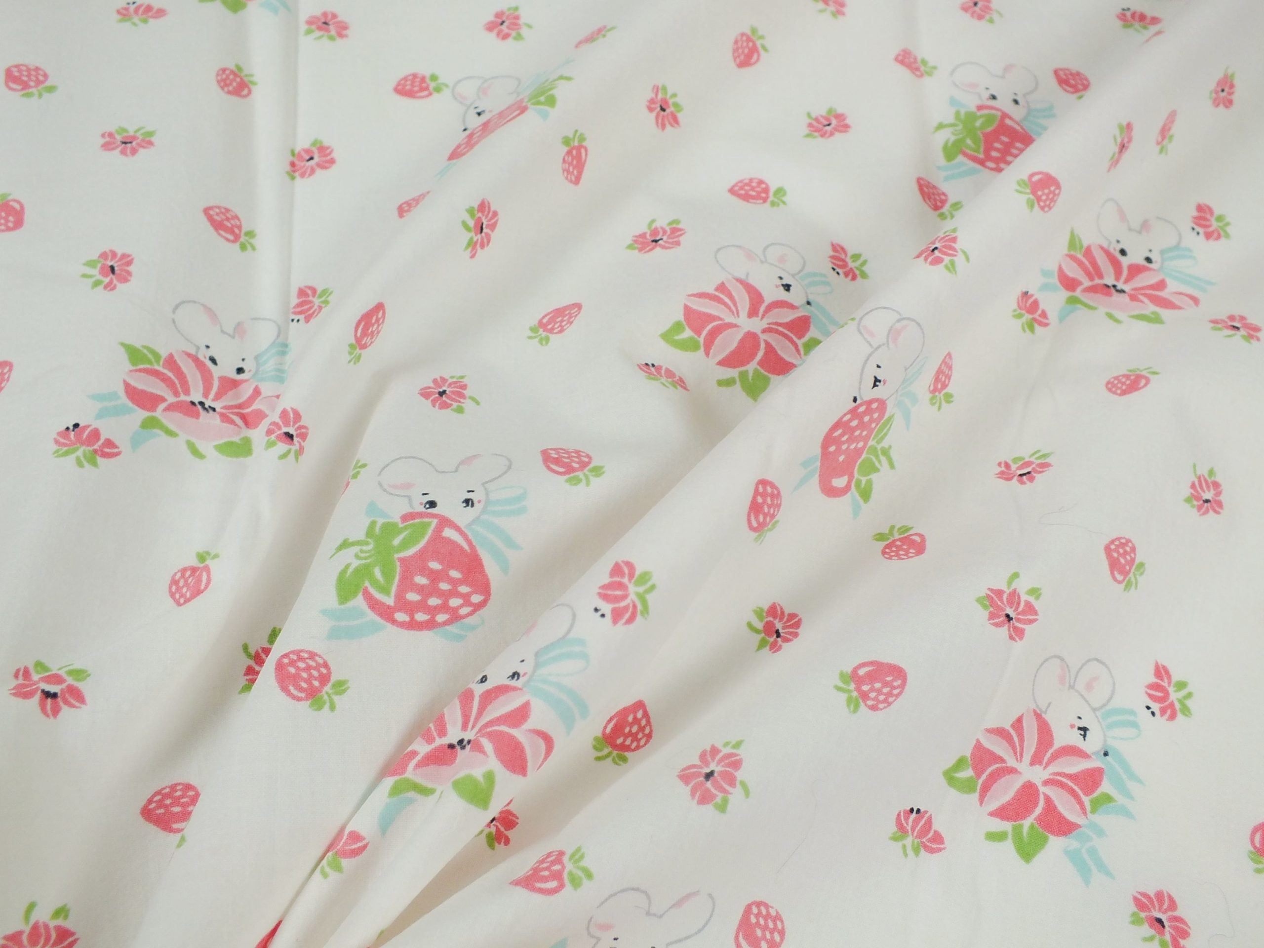 いちご畑に隠れたネズミ柄ファブリック。